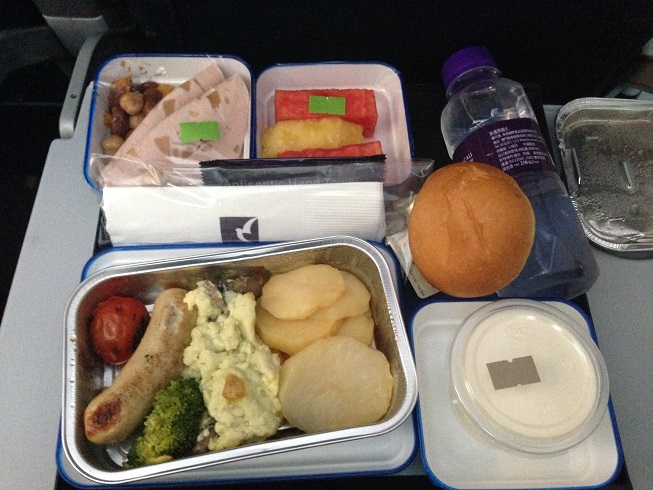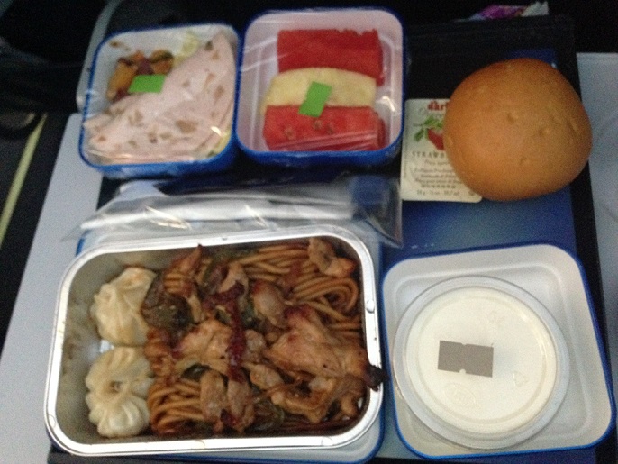 เวลาเสิร์ฟอาหาร (Economy เลือก Special meal ไม่ได้) จะมีให้เลือก 2 แบบ เรากับเพื่อนเลือกไม่เหมือนกัน รสชาติอาหารพอใช้ได้ รูปข้างบนนี้คืออาหารตอนขึ้นเครื่องมาเก๊าไปปักกิ่งค่ะ