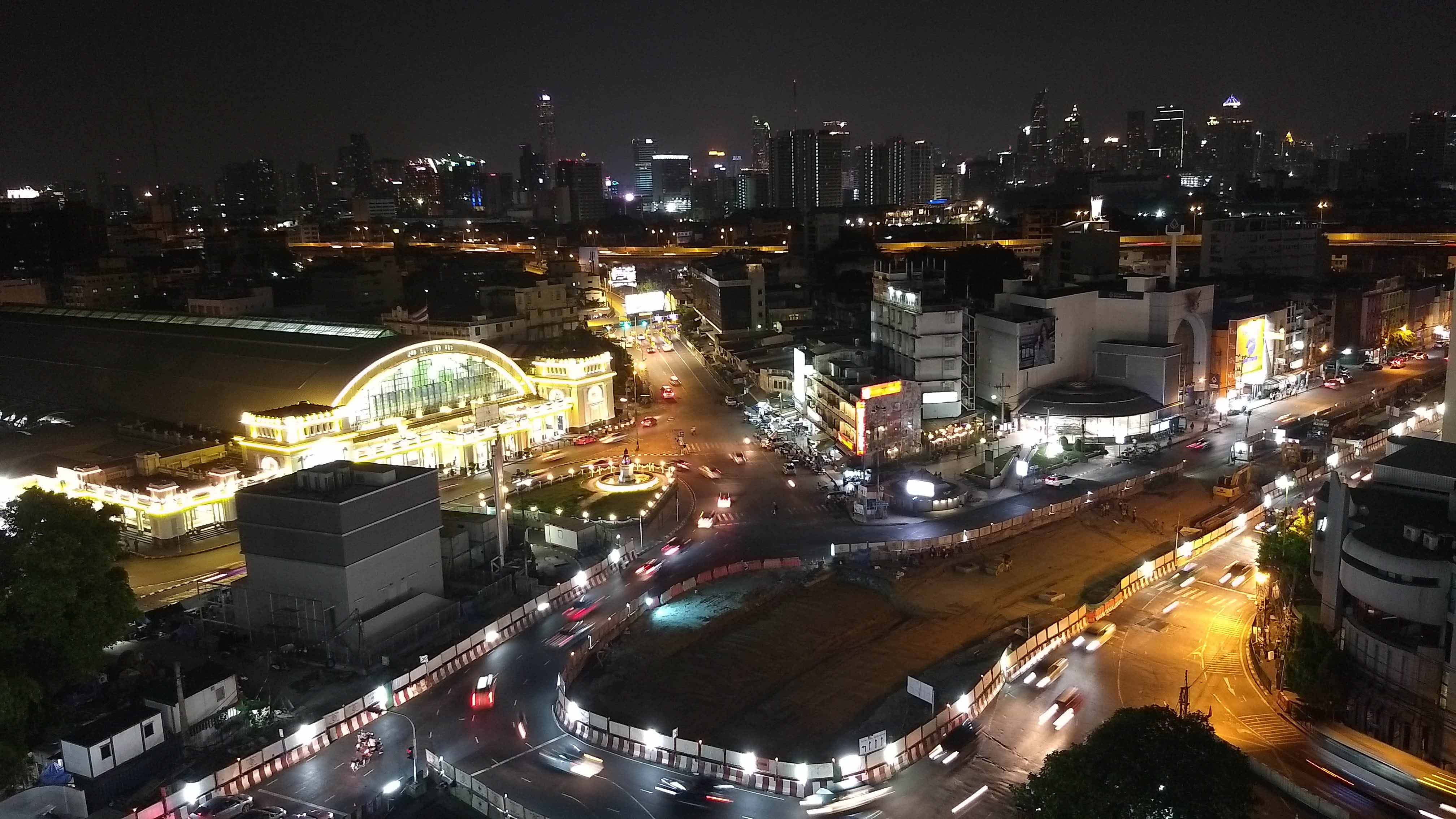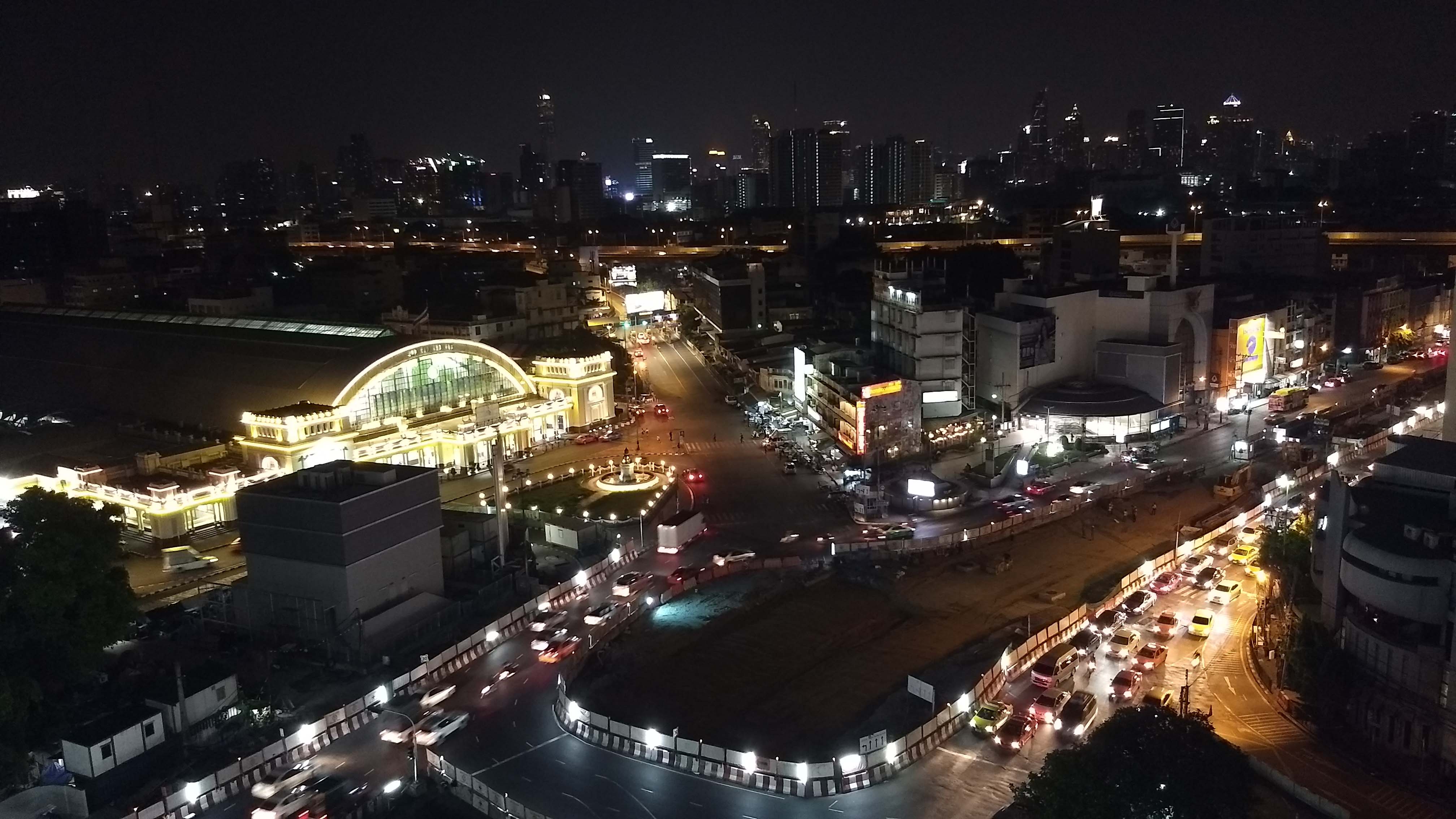 ผมเคยขึ้นไปถ่ายวิวที่โรงแรม Prime Hotel Central Station Bangkok ข้างบนของโรงแรมมันจะเห็นวิวของสถานีรถไฟหัวลำโพงแล้วก็ตึกใบหยกอยู่ ค่อนข้างสวยก็เลยเอาที่นี่แหละ