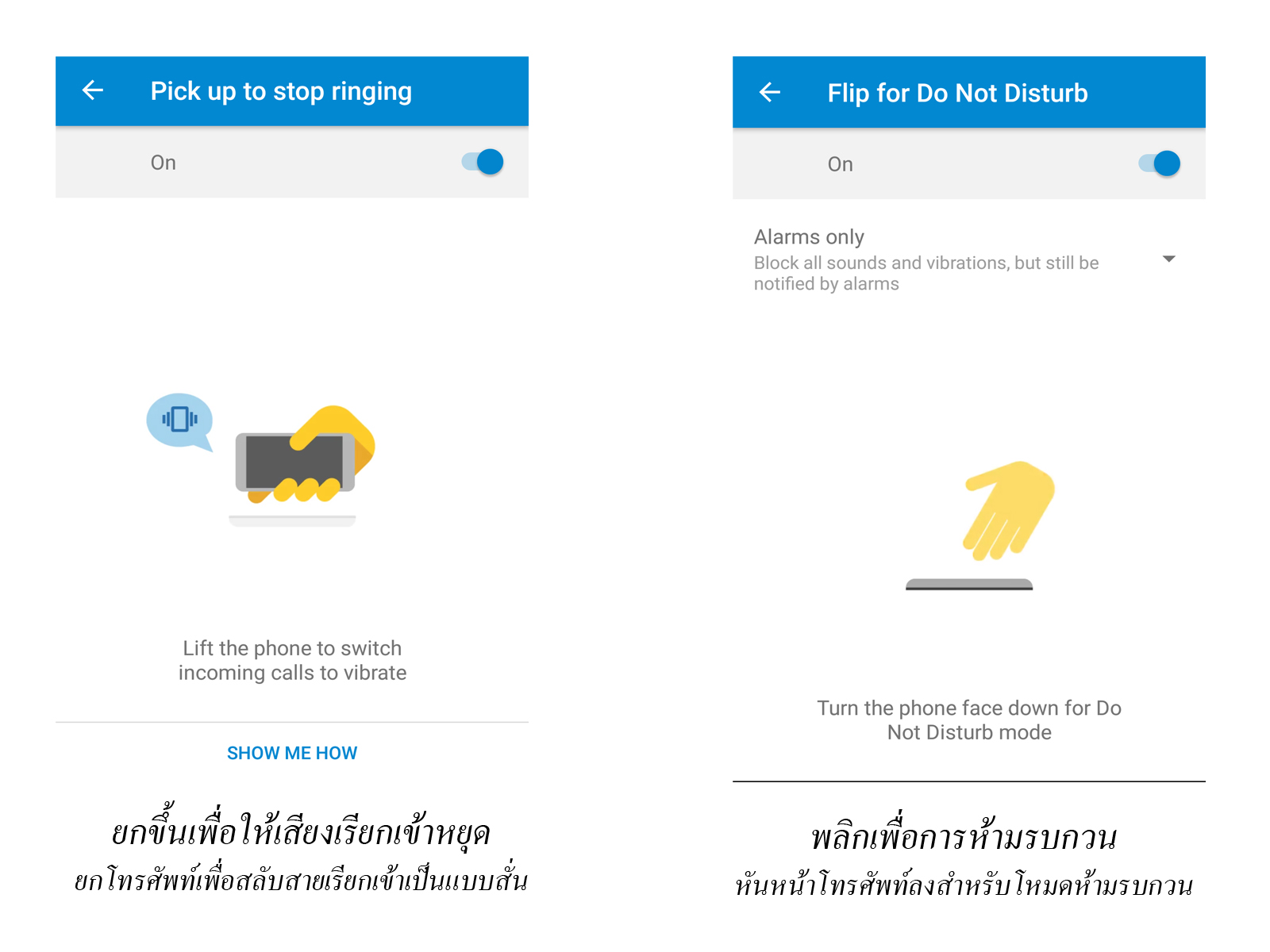 จะมีอีก1ฟังก์ชั่นที่ผมชอบในความ Innovations ที่ Moto เค้าใส่มาให้ ช่วยอำนวยความสะดวกเวลาใช้งานจริง (และดูคูลด้วย) เจ้าตัวนี้เเค้าจะเรียกว่า Moto Action ทำหน้าที่เหมือนเมนูลัดที่ช่วยให้เราเข้าถึงฟังก์ชั่นต่างๆได้โดยการขยับมือครับ เช่น