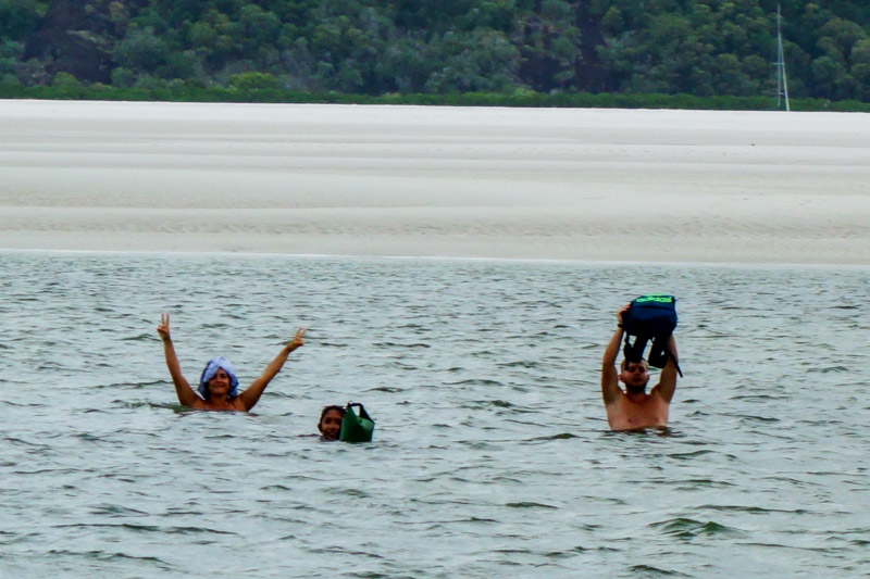 คราวนี้ก็ถึงเวลาเดินกลับ เดินไปสักพักซวยละ น้ำขึ้น ต้องว่ายน้ำไปค่ะคุณผู้โช้มมมมมมม ดีที่เราเอากระเป๋ากันน้ำติดตัวมาด้วย สภาพก็เป็นอย่างที่เห็นนี่ล่ะค่ะ เหมือนผู้อพยพข้ามเมือง