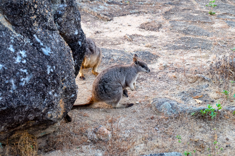 เราสองคนกลับมาเก็บของและขับรถไปในวันนั้นเลย เนื่องจากงานเริ่มพรุ่งนี้ เมื่อไปถึงก็เข้าไปหาเอเจนซี่ กรอกข้อมูลส่วนตัวนิดหน่อย และขอแผนที่ฟาร์มมา หลังจากนั้นเราก็เข้าไปที่ฟาร์ม เราไปถึงก่อนเวลานัด ซึ่งยังเป็นเวลาทำงานของคนในฟาร์มอยู่ และในระหว่างที่รอ เราเลยถือวิสาสะเข้าไปส่องบริเวณที่พัก ซึ่งสกปรกมาก เหมือนไม่มีการทำความสะอาดกันเลยมาเป็นเวลานาน เมื่อเห็นแบบนี้แฟนเราเลยบอกว่าเรากลับกันดีกว่า สภาพแบบนี้เราทนอยู่ไม่ได้แน่นอน เค้าเลยโทรหาเจ้าของฟาร์มและบอกขอโทษด้วยแต่ไม่รับงานนี้แล้ว เจ้าของฟาร์มโมโหมากค่ะคุณ ดีที่ยังไม่เจอหน้ากัน แล้วเราก็รีบเผ่น แต่ไหนๆก็มาที่นี่แล้ว ยังไม่อยากขับรถกลับ เลยลองดูใน wikicamp ว่ามีอุทยานหรือที่เที่ยวอะไรใกล้ๆบ้าง และตอนนี้ก็เย็นมากแล้ว เลยกะจะค้างคืนที่นี่ซะเลย จนมาเจอที่ๆนึง ชื่อว่า Granite Gorge Nature Park ซึ่งเรายกให้ที่นี่เป็นสุดยอด Caravan Park ตั้งแต่เราได้ออกเดินทางมาเลยล่ะค่ะ