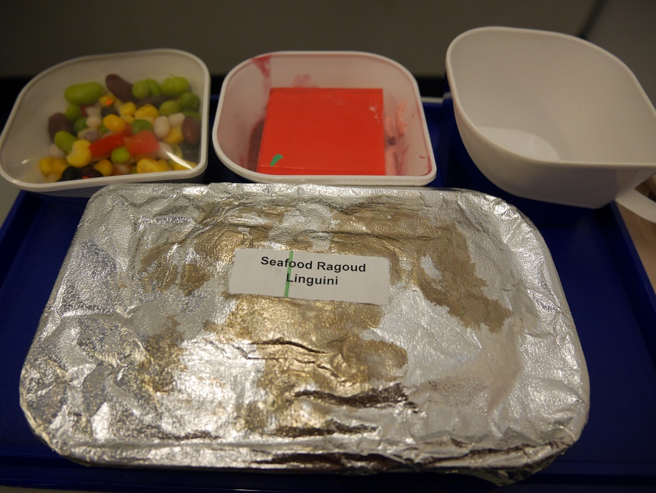 เมื่อขึ้นเครื่องแล้วก็จะมีของว่างเสิร์ฟให้ก่อนเลยค่ะ เป็นกล้วยหอมทอดอบกรอบและเครื่องดื่ม สักพักก็เสิร์ฟอาหาร อิ่มปุ๊ปหลับปั๊ป ^^