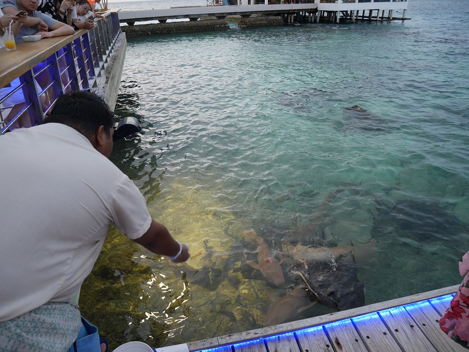 - Coral Bar : บาร์เครื่องดื่มและของทานเล่น อยู่ใกล้กับห้องอาหาร Reef ช่วงบ่ายมี Afternoon tea จะมีของทานเล่นให้นิดหน่อย ตอนเย็นของทุกวันเจ้าหน้าที่จะโชว์ให้อาหารปลาฉลามและปลากระเบน ตอนกลางคืนก็จะมีกิจกรรมแต่ละวันสับเปลี่ยนกันไป และที่นี่มักเป็นจุดนัดพบของกิจกรรมที่ต้องออกเรือไปนอกเกาะด้วยค่ะ