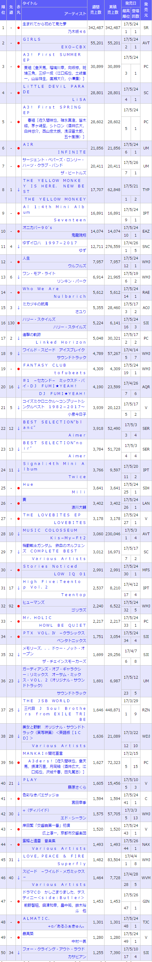 วงไอดอล Nogizaka46 จากสังกัดค่าย Sony Music Japan วางขายอัลบั้มชุดที่สามกับอัลบั้ม 『Umarete Kara Hajimete Mita Yume』(วางขายเมื่อวันที่ 24 พฤษภาคมที่ผ่านมา) ขายไปได้ 342,487 แผ่นในสัปดาห์แรก ขึ้นสู่อันดับ 1 ของโอริคอนชาร์ทอัลบั้มรายสัปดาห์ เป็นอัลบั้มอันดับ 1 ครั้งที่ 3 ติดต่อกัน