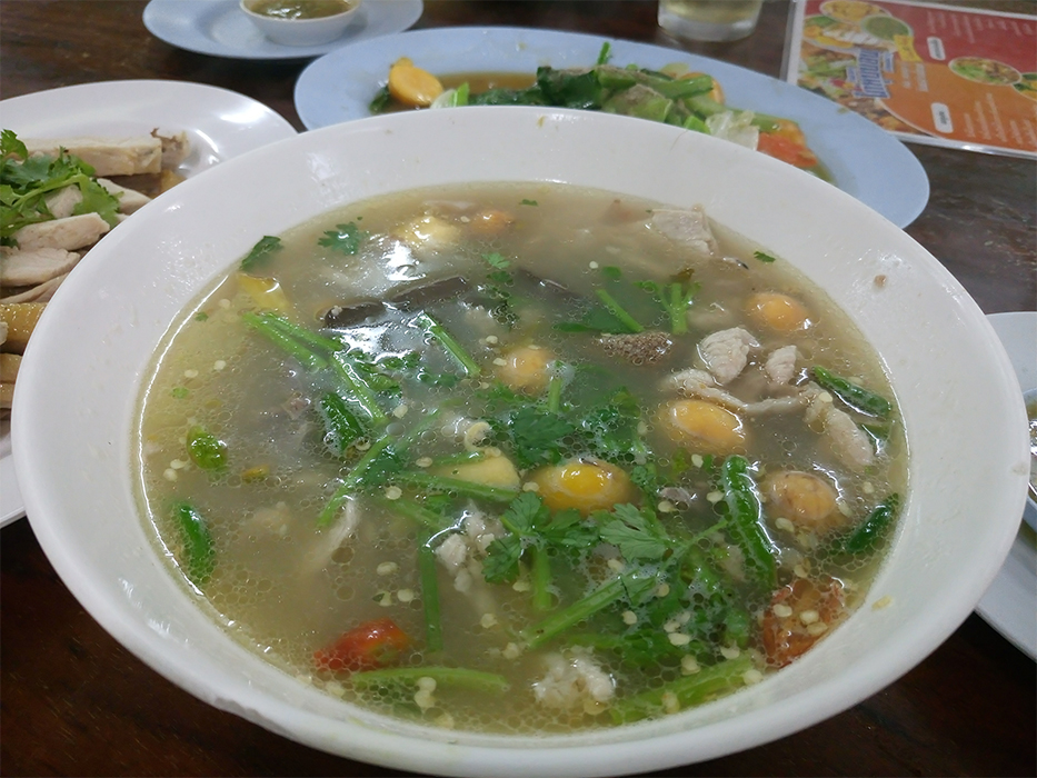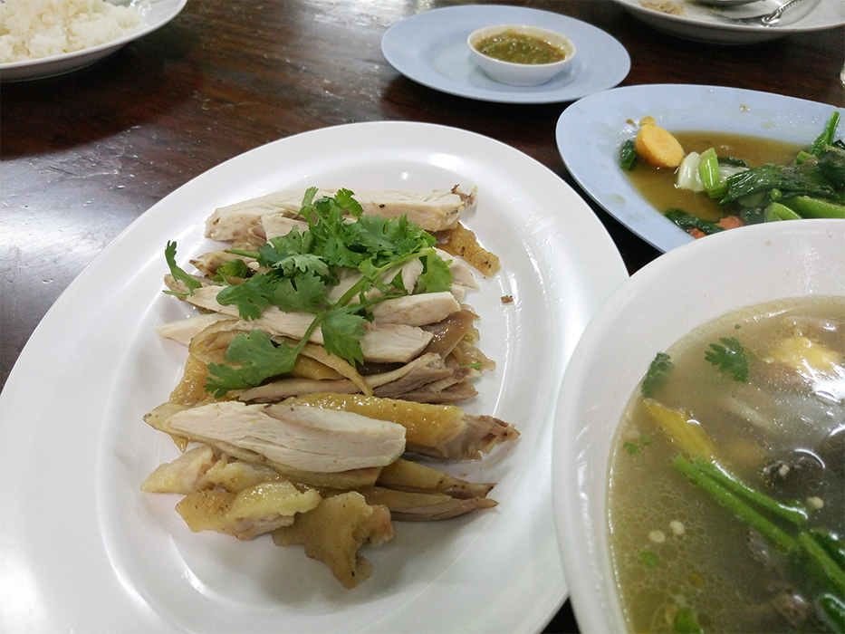 เมนูที่สั่งก็มี คะน้าผัดไข่อ่อน, ไก่หุบบอนต้ม, ต้มยำไก่, ผัดกระเพราไก่