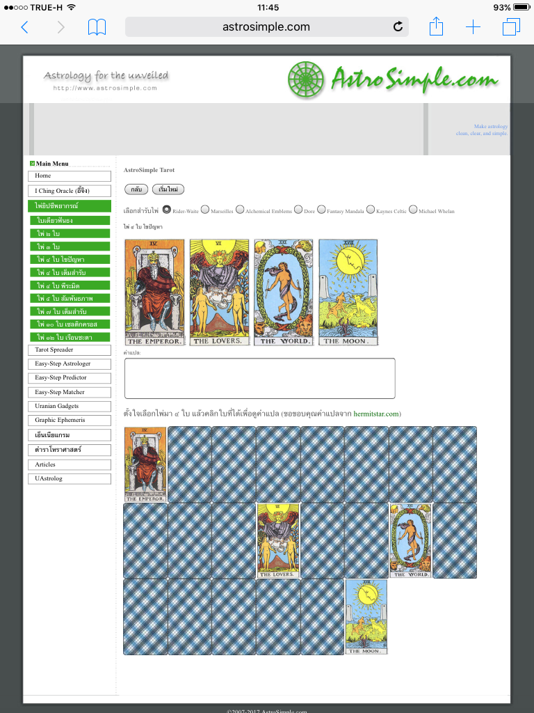 ลองตั้งใจเลือกไพ่ครั้งแรก ถามถึงเรื่องความรักว่าจะได้แต่งงานกับชาวต่างชาติ คนที่รักเรา คนดีและชีวิตที่ดีในต่างประเทศหรือไม่ ได้ไพ่ตามนี้ค่ะ