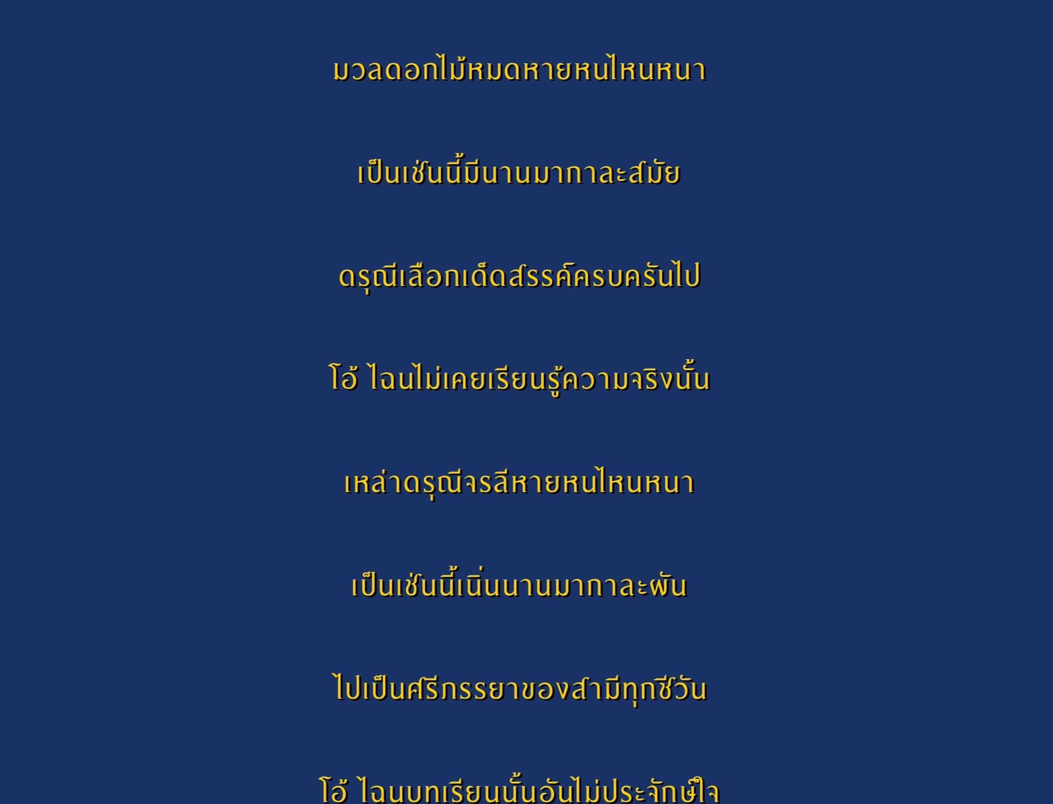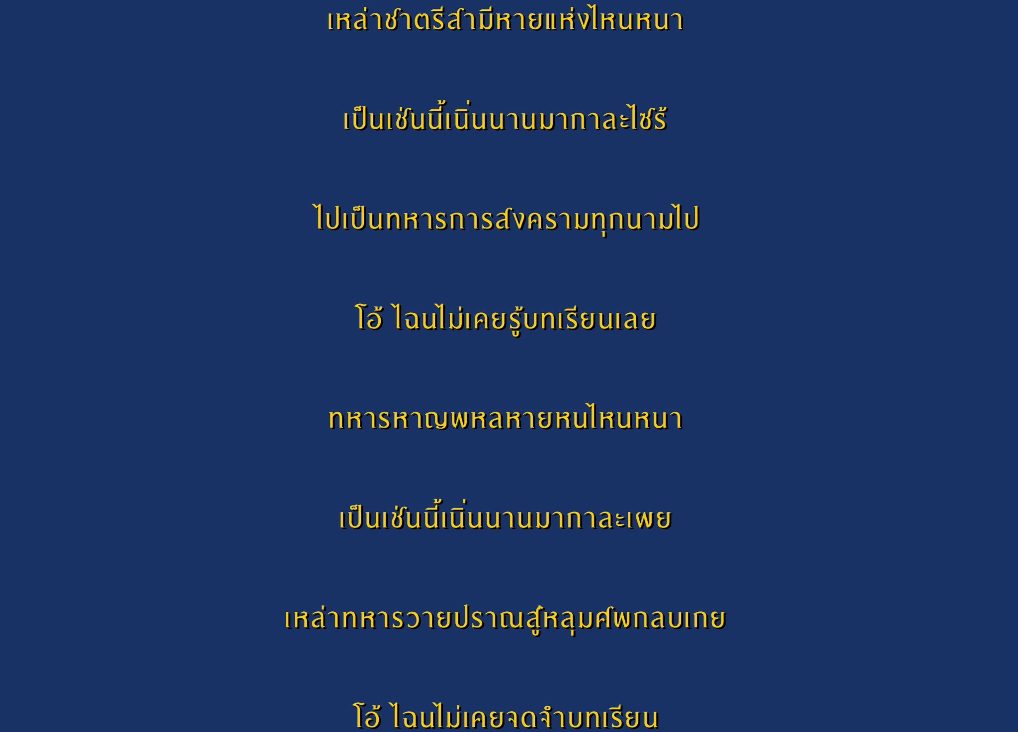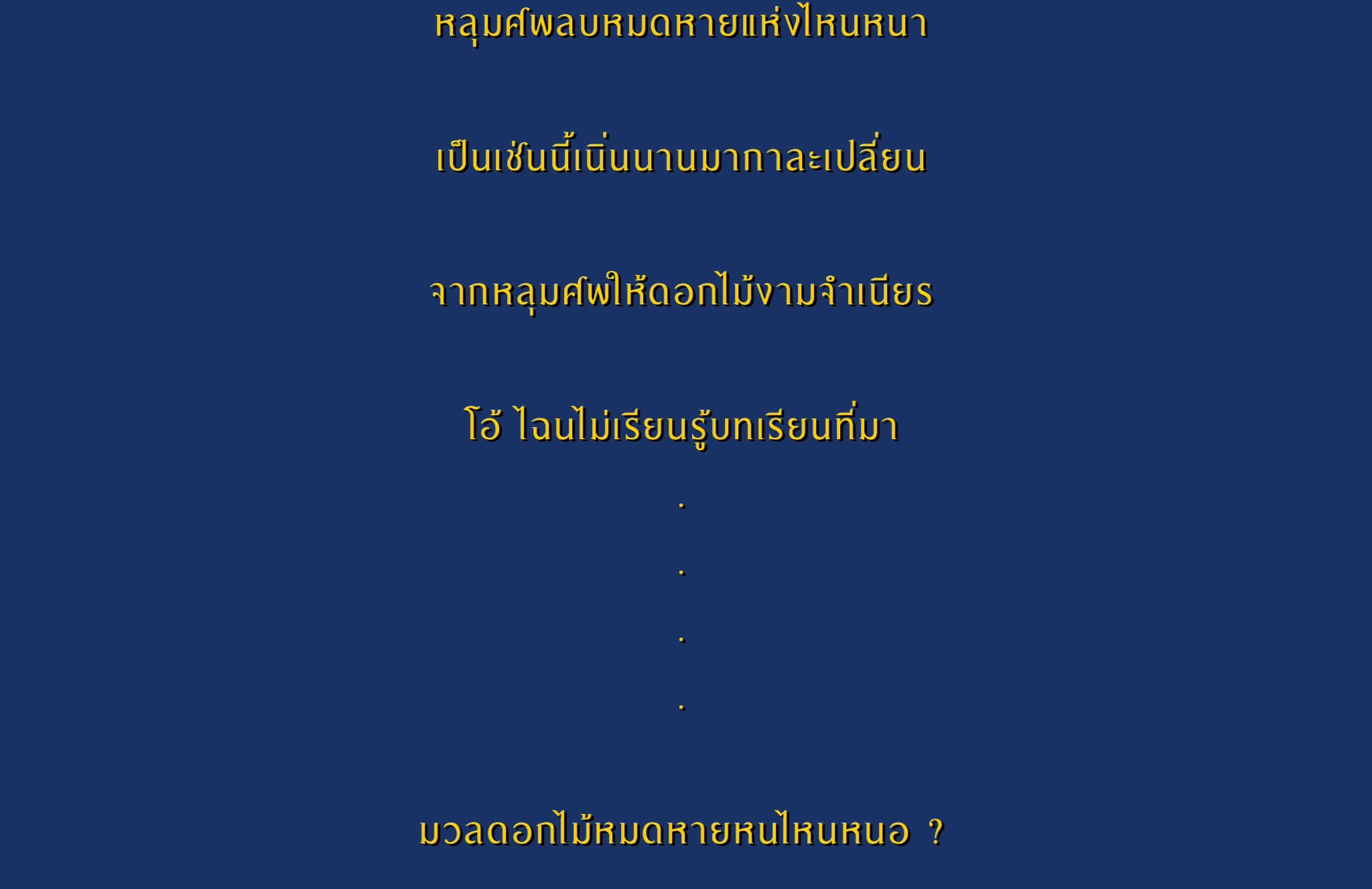ระหกเหเร่ไกลใจรอนร้าวเวหาหาวกว้างใหญ่ที่ใดหนาได้พักพิงอิงคอนผ่อนกายาหลุบปีกล้าระโหยอ่อนโรยแรง ค่ำคืนหวาดวิตกสะทกสะท้านรัตติกาลกลืนกลบเลือนลบแสงสายลมหวีดกรีดผ่านม่านไม้แปลงคล้ายเสียงแสร้งปีศาจแทรกบาดทร
