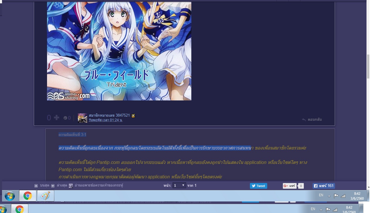 ตอนนี้เค้าลบ อะไรกัน..ลบความเห็นที่ตอบกันแบบธรรมดา ถามหาคู่ ไม่ได้มีคำหยาบ หรือ ไม่สุภาพ หรือประชดกันเลย แต่เห็นโดนลบ..