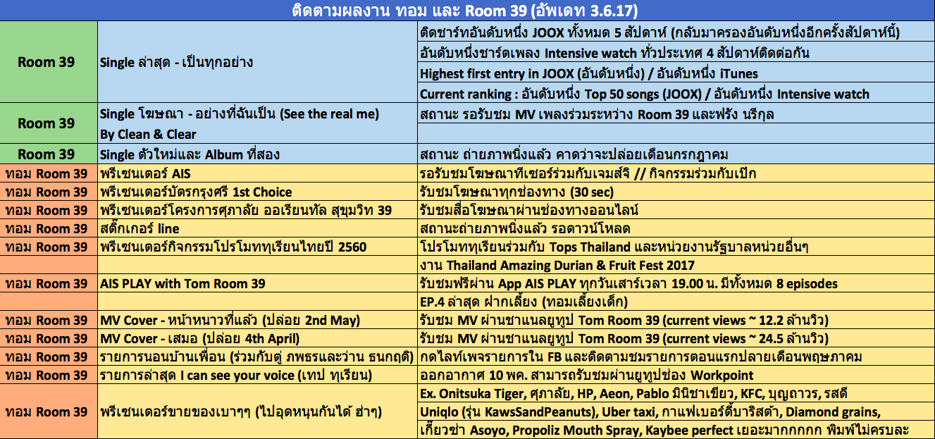 อัพเดทตารางงาน & ผลงาน ทอม Room 39 #6 วันนี้มาตามงานแฟนมิตติ้งวันเกิดทอมกัน ตามด้วยมินิคอนฯ Room 39 อีกสองที่นาจา
