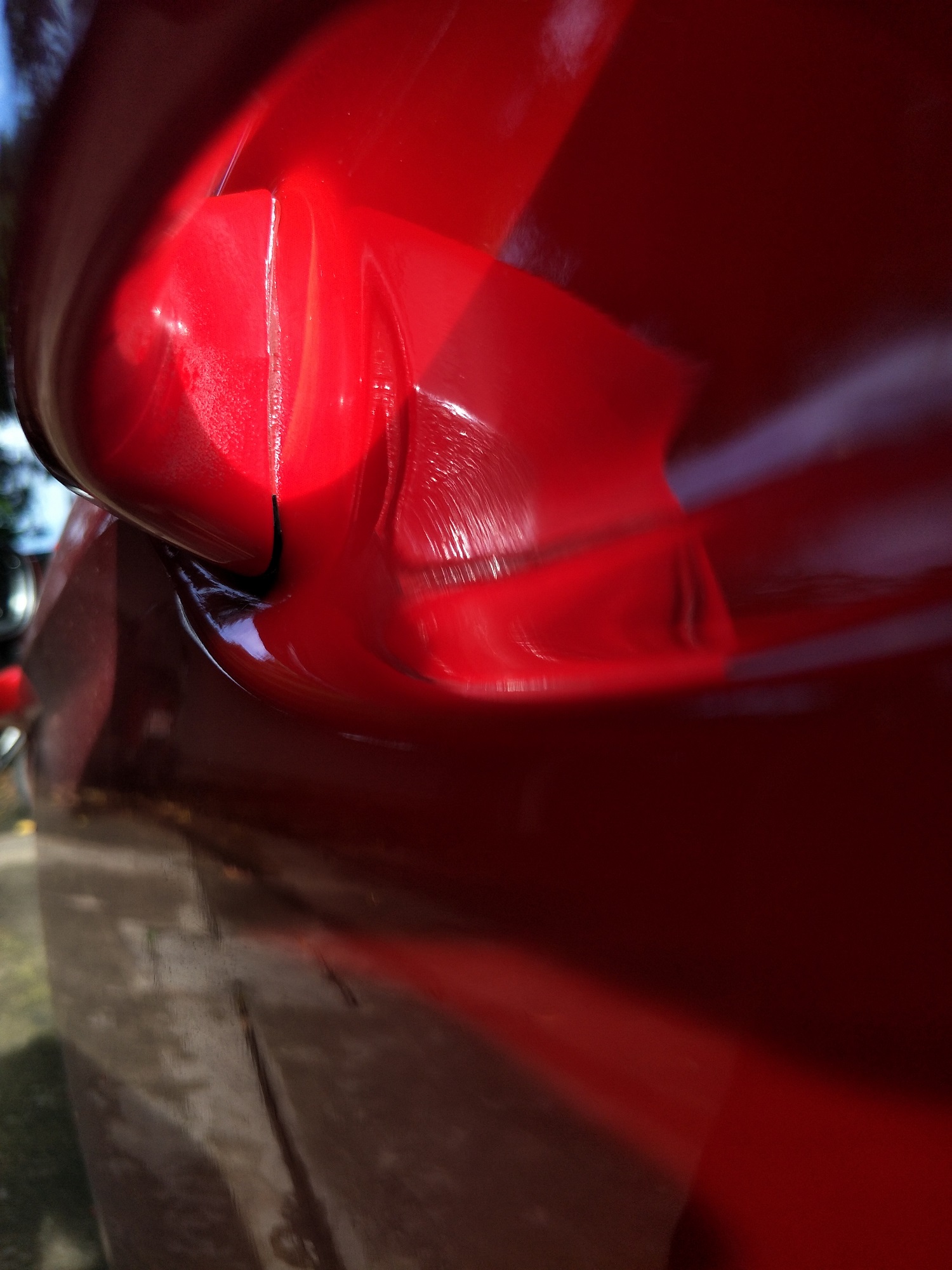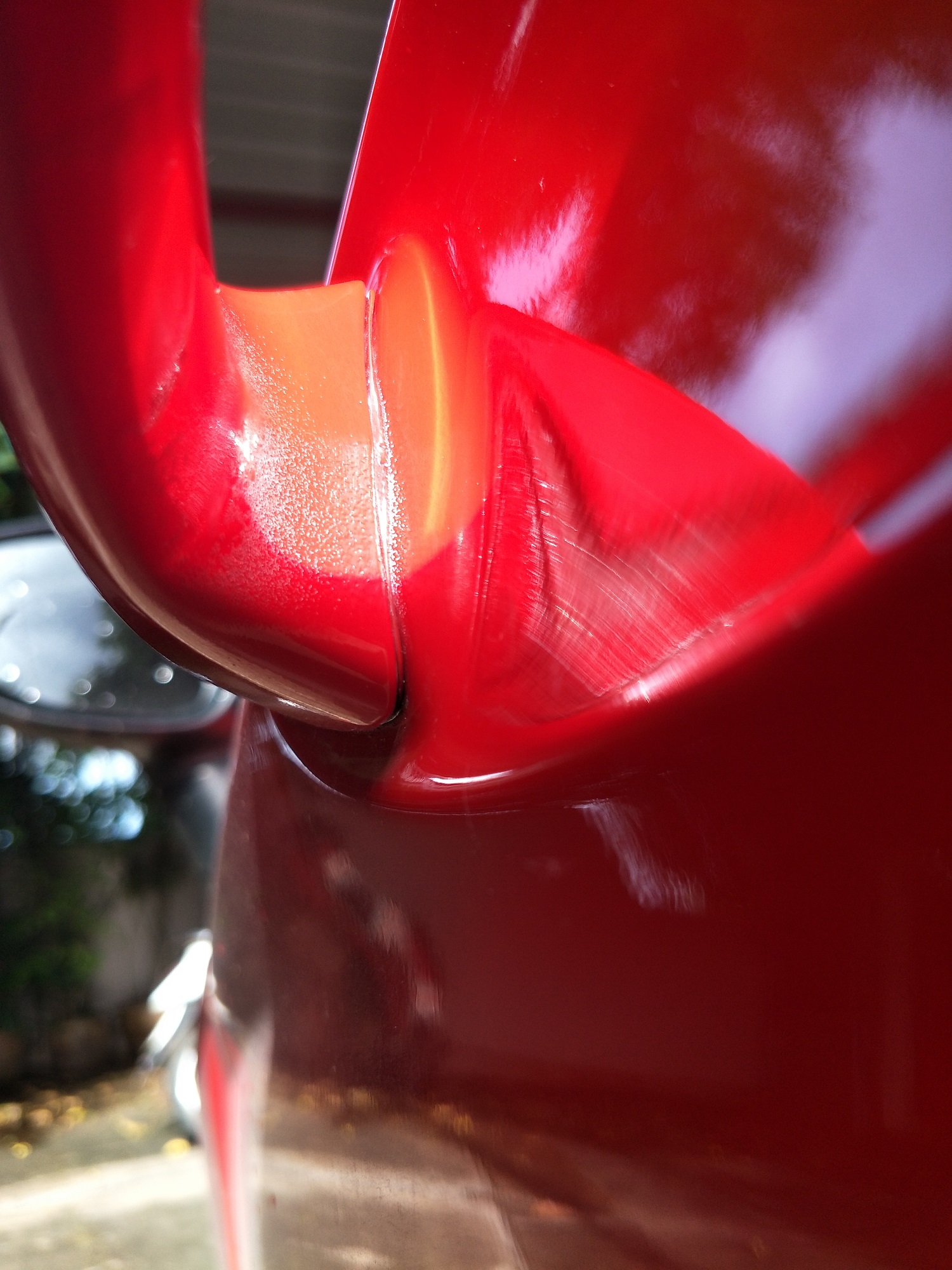 - ผมจึงแจ้งเรื่องให้ จนท ทราบ จนท จึงติดต่อไปที่ศูนย์ มิตซู เพราะ Ford ส่งต่อให้ มิตซู เป็นผู้ทำสีให้ ระหว่างรอผมจึงได้เช็คผลงานรอบรถดูพบว่า 1. กันชนหลังติดเบี้ยว(แก้แล้วทีนี้เซ็นเซอร์ถอยหลังค้างแทน) 2. ขอบซุ้มล้ออ้า(เช็คกับรถคันอื่นซึ่งเรียบสนิท) 3. อันนี้เรื่องใหญ่คือ บริเวณมุมด้านในของที่เปิดประตูทั้ง 4 บาน สากมากเหมือนขัดทิ้งไว้แล้วไม่ได้พ่นหรือพ่นไม่ครบ 4. รอยขีดข่วนที่ประตูหลัง 5. รอยที่กันชนหน้า 6. ทะเบียนไม่แน่น