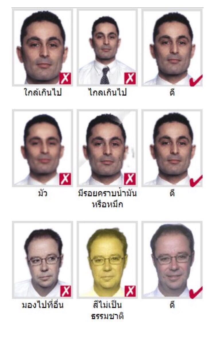 รู้มั้ยถ่ายแล้วต้องมาถ่ายใหม่เสียตังนะเว้ย ทางที่ดีที่สุดเอารูปตัวอย่างให้ดูด้วยเอาขนาดหน้าใหญ่ๆเท่านี้!!!!!! ต่อให้ร้านดีร้านดังถ่ายออกมาหน้าสวยเล็กผอมบอกเลยไม่ผ่าน ถ่ายใหม่ครัช ต้องหน้าใหญ่แทบเต็มกรอบแต่ต้องเห็นคอแทบไม่เห็นไหล่นี่ผ่านฉลุย (ไม่ต้องห่วงว่ารูปไม่สวยจะไปโชว์ในหน้าวีซ่า เค้าถ่ายใหม่ให้ ณ วันที่ไปทำวีซ่าขั้นตอนการทำ Biometric นะจ๊ะ)