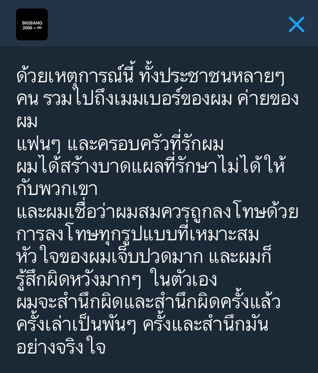 ชเวซึงฮยอน หรือ T.O.P วง BIGBANG ได้เขียนจดหมายขอโทษ