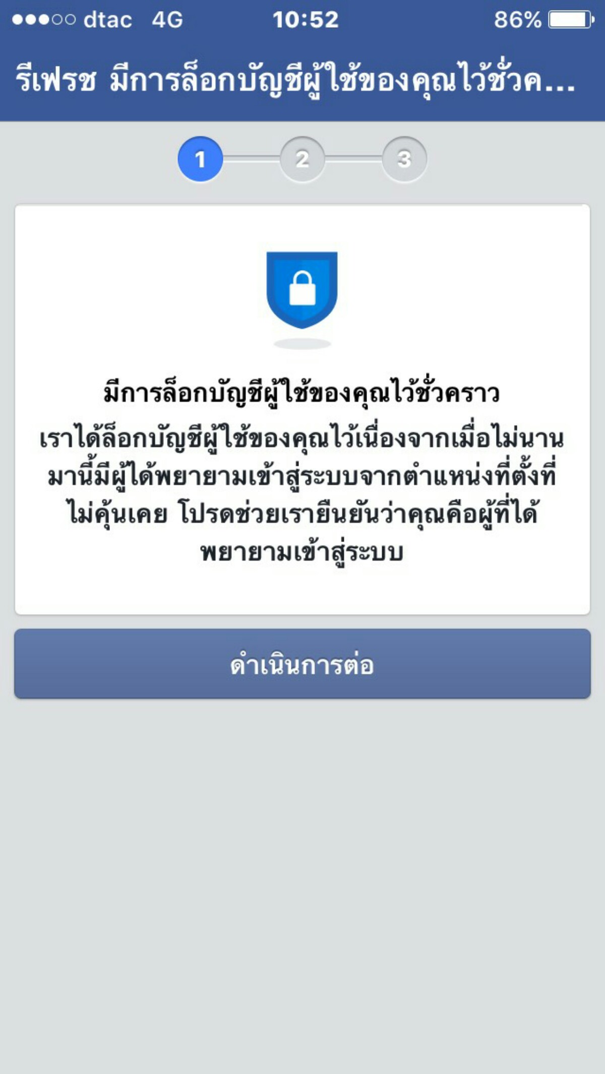 หน้าเฟส ขึ้นข้อความนี้ควรทำอย่างไรค่ะ