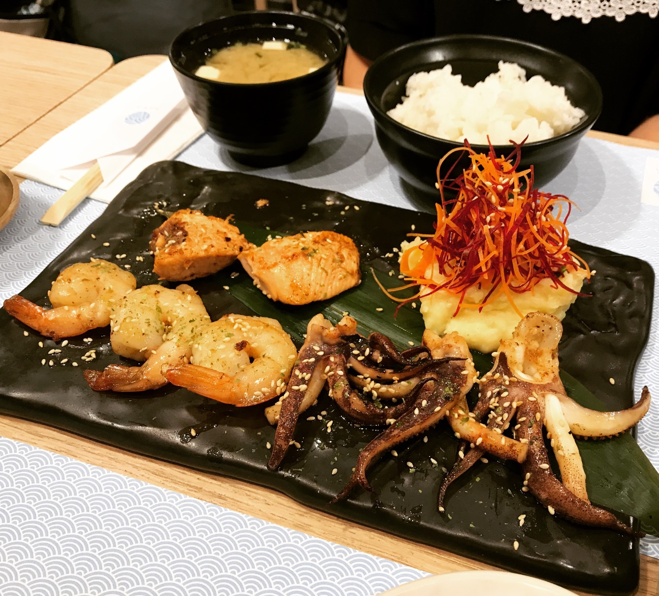 Seafood Steak Set ของม๊า เนื่องจากทั่นแม่ไม่ทานดิบ ไม่ทานนมเนย เลยจัดซีฟู้ดไป รสชาติดีทีเดียว