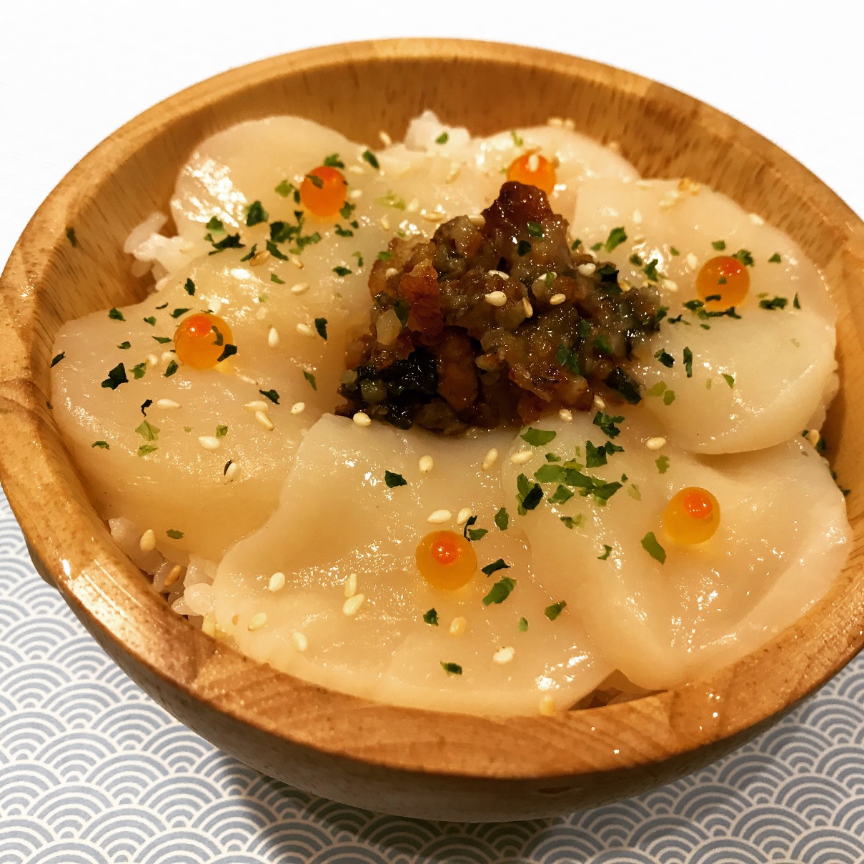 Mini Hotate Foie Gras Don ของน้องสาวคนเล็ก นุ่ม กรุบ เต็มคำ ไม่เหม็นคาวเลย สามผ่าน