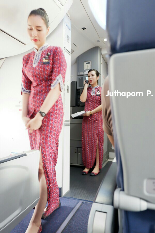 พอเราเดินขึ้นเครื่อง เราบอกพนักงานต้อนรับบนเครื่องคนแรกที่เราเจอตอนนั้น คือ คุณ Juthaporn P. แล้วโชคดีที่พี่เค้าเป็นหัวหน้าลูกเรือทั้งหมด พี่เค้ารับเรื่องแล้วติดต่อทางเจ้าหน้าที่ภาคพื้นข้างล่างให้ โดยไม่รีรอ พี่เค้าขอตั๋วของเราไปเช็คเลขแท็ก แล้วเดินกลับมาบอกเราว่า 'ใจเย็นๆ นะคะ เดี๋ยวเจ้าหน้าที่เอากระเป๋าขึ้นมาให้ ผู้โดยสารเอาโทรศัพท์ออกนะคะ' เราก็ยังนั่งกังวลอยู่ พี่เค้าก็เดินมาบอกอีกรอบพร้อมรอยยิ้ม 'ใจเย็นๆนะคะ' รวมถึงพี่อีกคนที่ทราบเรื่อง (พี่ผู้หญิงอีกคนในภาพ)