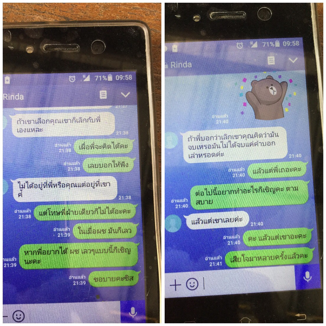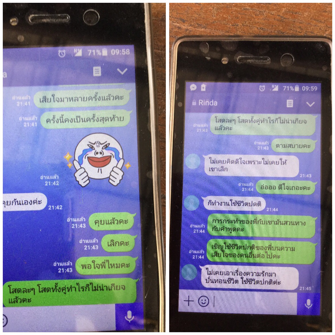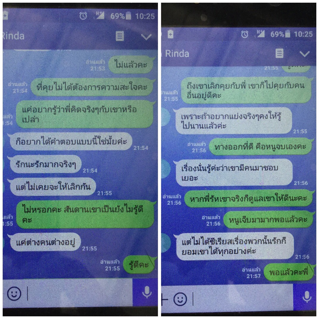 สุดท้ายนี้เราคงต้องทำใจคะ ตัดใจจากเขาเพราะเราคิดว่ายังไงเขาก็คงไม่กลับมาแล้ว เสียใจมากๆกับเรื่องราวในครั้งนี้คะ ร้องไห้จนถึงทุกวันนี้ไม่รู้ต้องใช้เวลาสักกี่วัน กี่เดือน กี่ปี ถึงจะลืมเขาได้คะ สุดท้ายคงเหลือแต่รูปถ่ายและความทรงจำตลอด 10 ปีที่ผ่านมาคอยตอกย้ำความเจ็บให้เราคะ