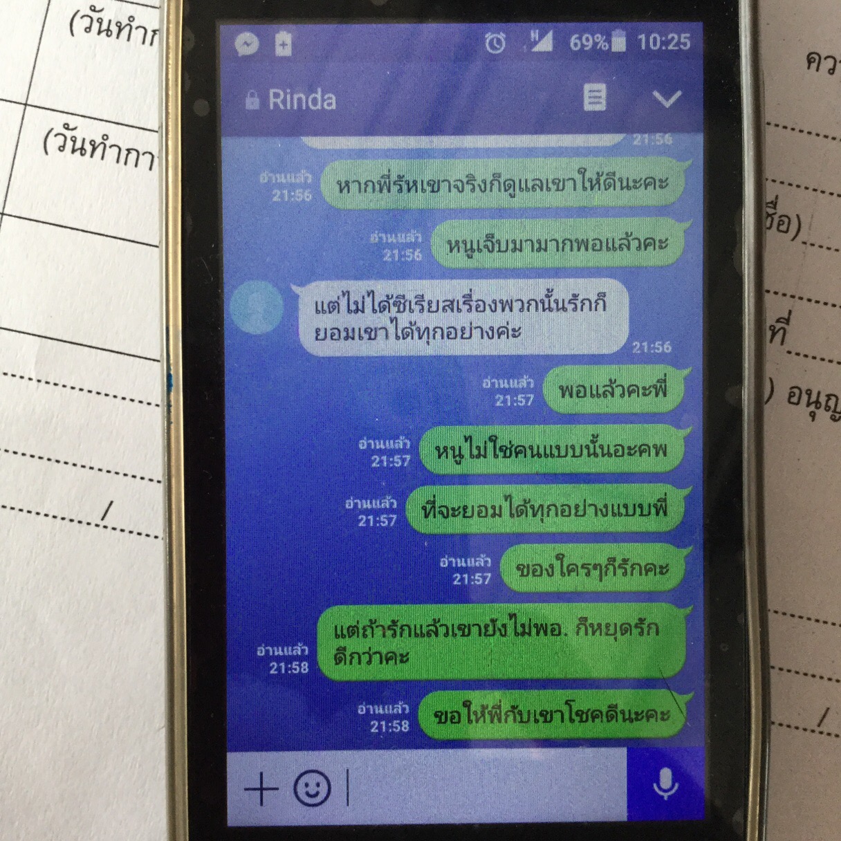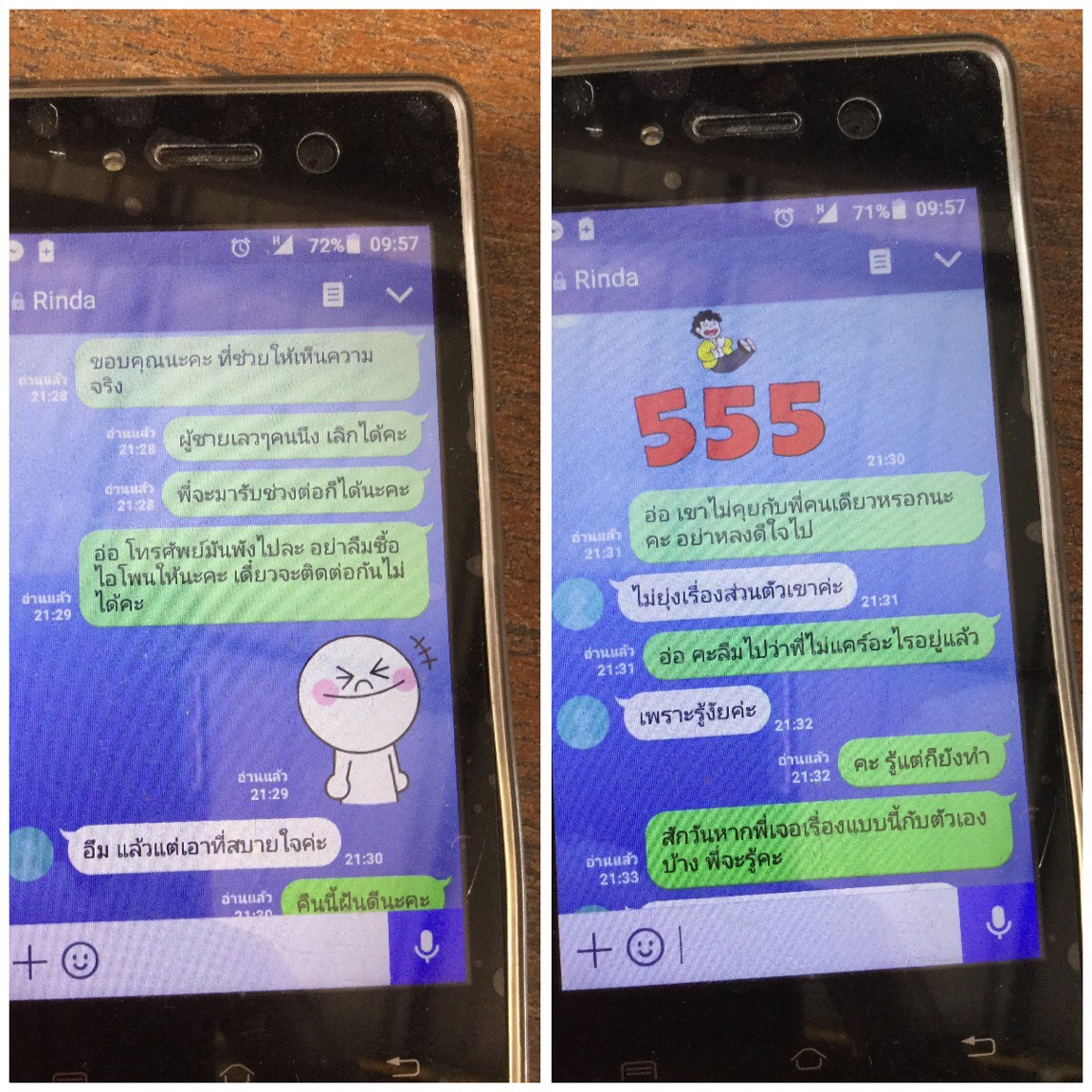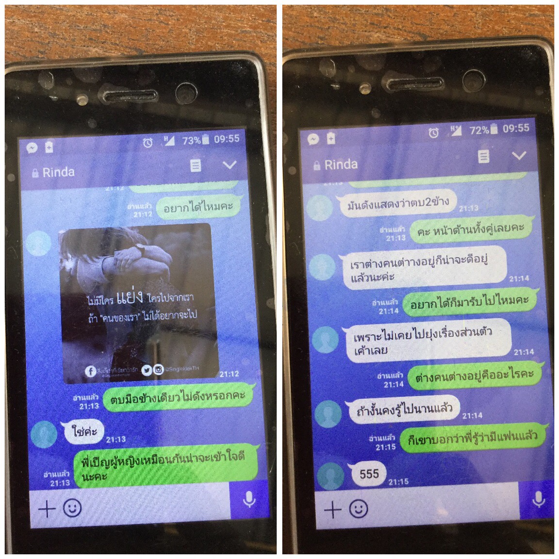 สุดท้ายนี้เราคงต้องทำใจคะ ตัดใจจากเขาเพราะเราคิดว่ายังไงเขาก็คงไม่กลับมาแล้ว เสียใจมากๆกับเรื่องราวในครั้งนี้คะ ร้องไห้จนถึงทุกวันนี้ไม่รู้ต้องใช้เวลาสักกี่วัน กี่เดือน กี่ปี ถึงจะลืมเขาได้คะ สุดท้ายคงเหลือแต่รูปถ่ายและความทรงจำตลอด 10 ปีที่ผ่านมาคอยตอกย้ำความเจ็บให้เราคะ