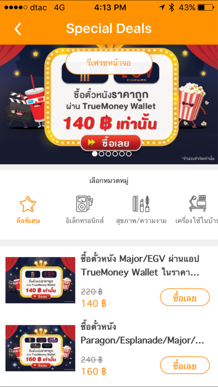 ใครที่ใช้แอพฯ นี้ก็อาจจะเห็นแบนเนอร์ให้ซื้อตั๋วหนังในราคา 140 บาทผ่านตากันบ้างนะครับ