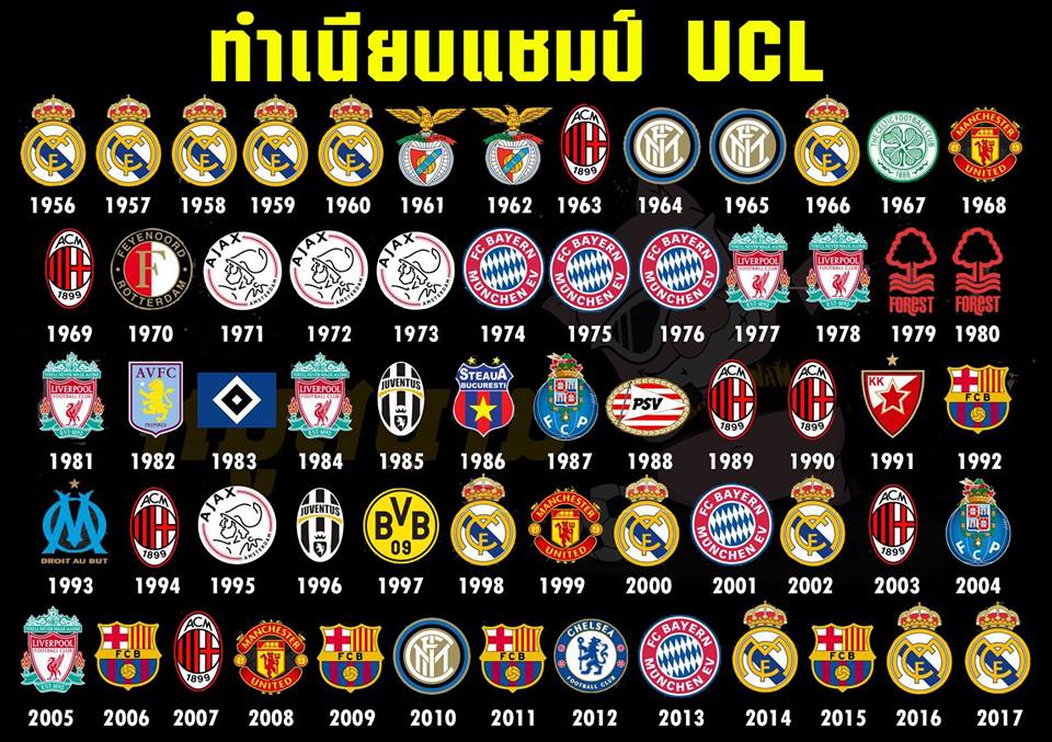 เจ้ายุโรปต้องได้แชมป์ ucl กี่ครั้ง