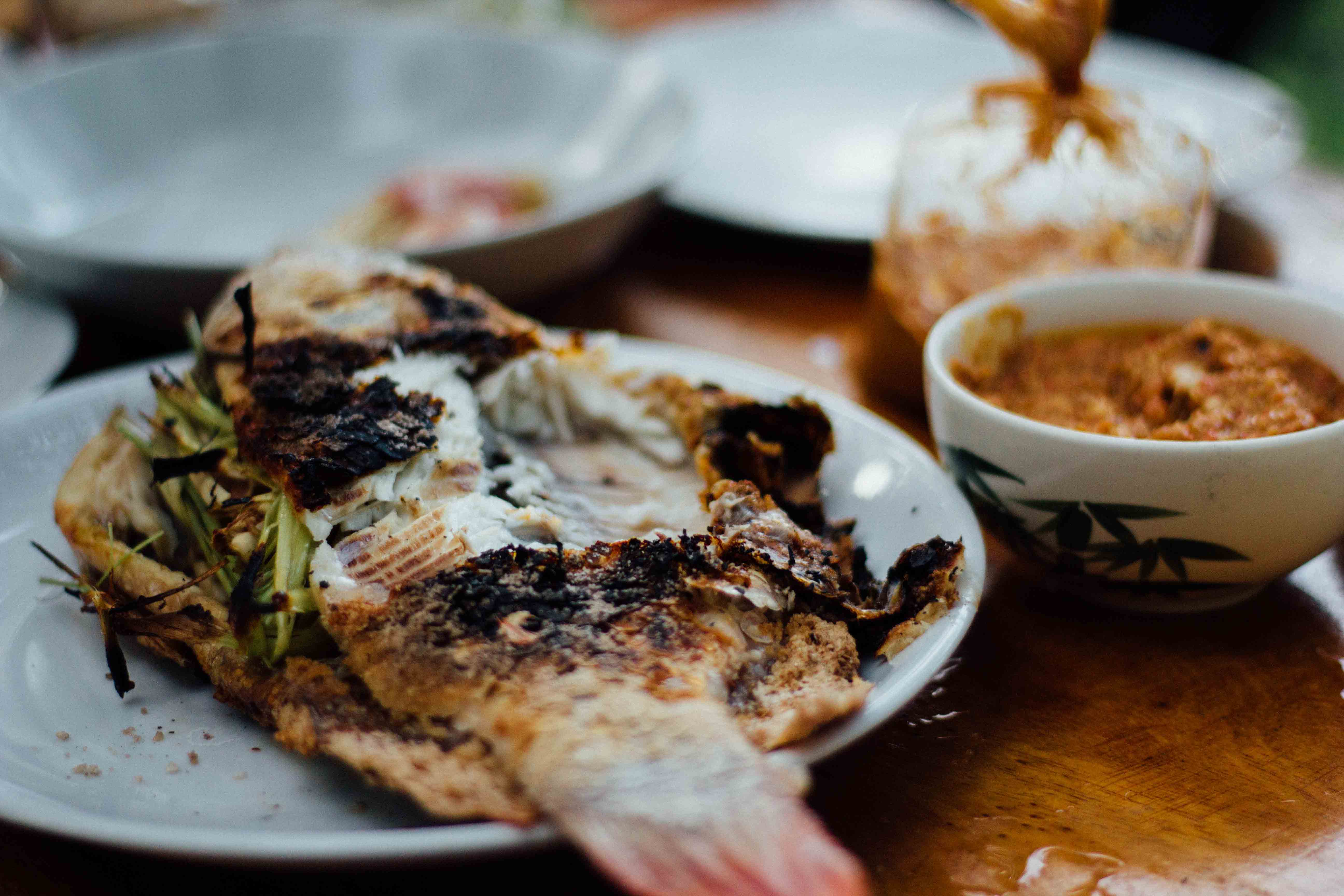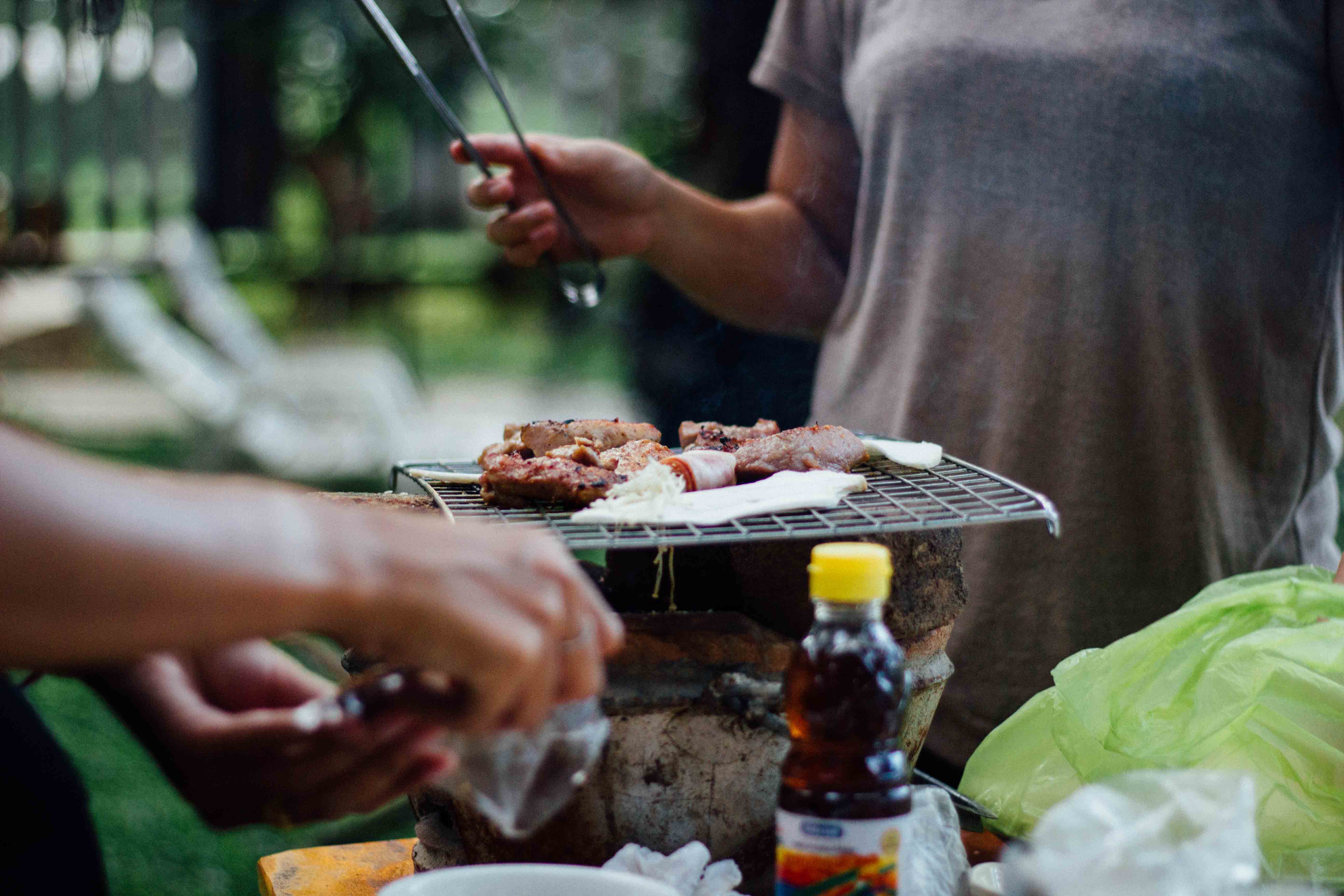 ช่วงเวลาปาร์ตี้กัน มีเมนูปลาย่าง ไส้กรอกปิ้ง เบค่อน และผักปิ้งกินกันเพลิน