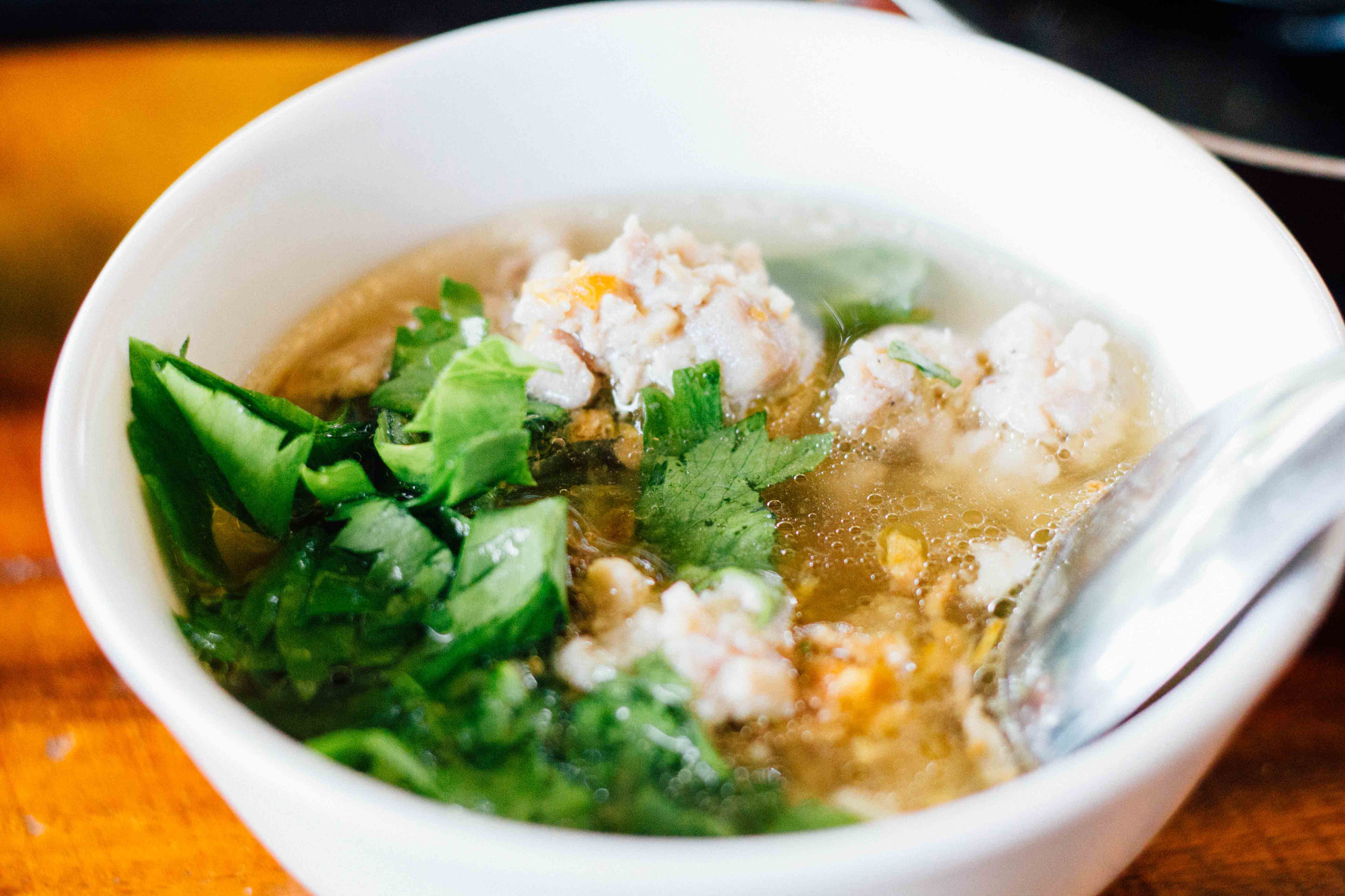 เราก็จัดไปครับ ไข่กระทะ ข้าวต้มพร้อมน้ำซุปร้อนๆ