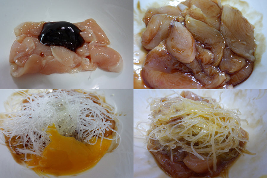 เริ่มต้นจากหมักเนื้อไก่กับซอสก่อน