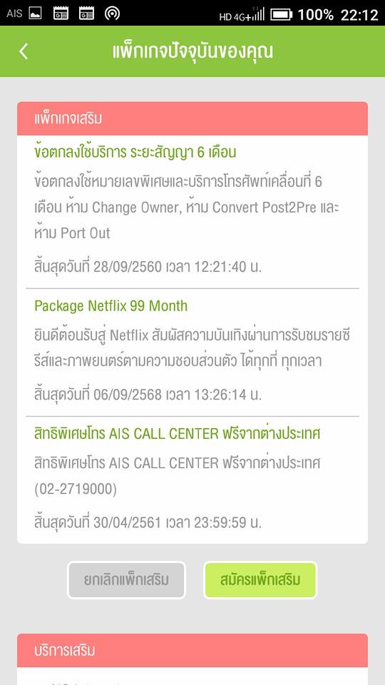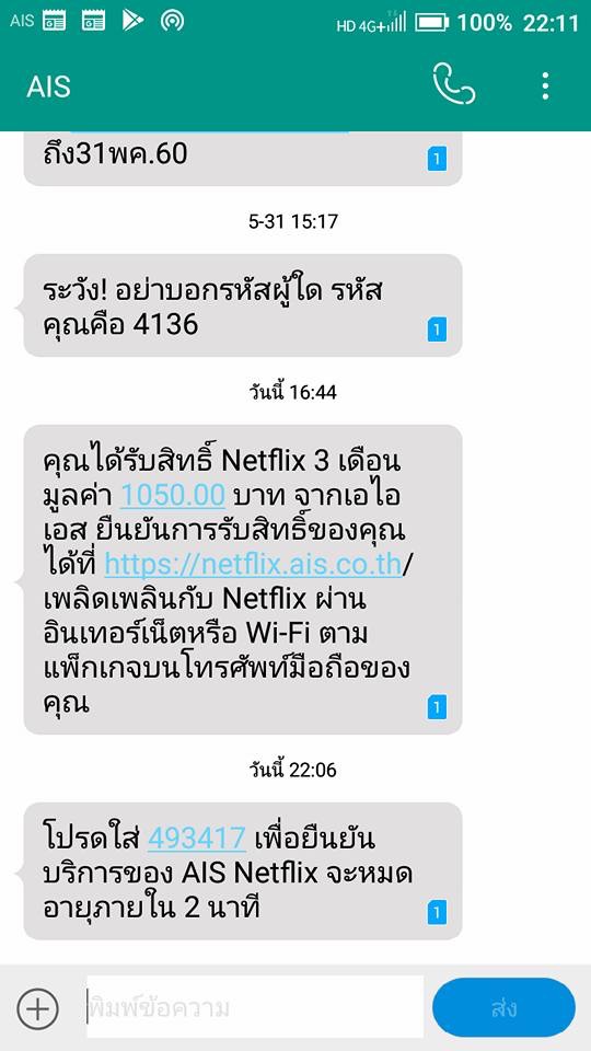 ผมเปิดเบอร์มาตั้งแต่เดือนเมษายน ไม่คิดว่าจะได้รับสิทธิกะเค้าด้วย ตอนนี้ไม่รู้จะดูอะไรใน Netflix แล้วล่ะครับ ซีรีย์ที่ชอบก็ดูเกือบหมดแล้ว เดี๋ยวลองไล่ดูหนังบ้างดีกว่า พากษ์ไทยเกือบทุกเรื่อง ขอบคุณ AIS มากๆนะครับ