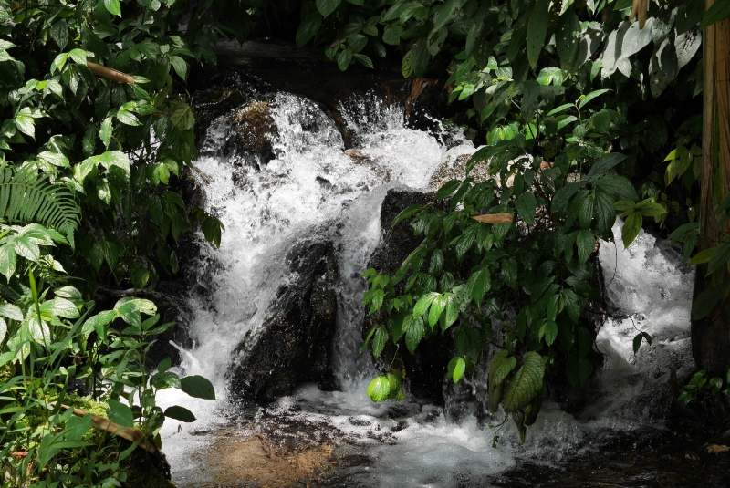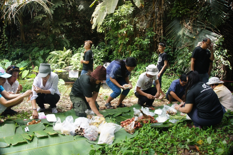 เวลา 11.30 น. เดินทางถึงน้ำออกรู ณ หมู่บ้านสันเจริญ เพื่อเตรียมพื้นที่พักรับประทานอาหารริมน้ำ ชมบรรยากาศที่เป็นธรรมชาติฟังเสียงน้ำไหล มองเห็นตัวปลาว่ายไปมาในน้ำได้อย่างชัดเจน กิจกรรมนี้สร้างความประทับใจให้กับทุกๆคนรวมไปถึงลูกค้าของกาแฟเอราบิก้าด้วยเช่นกัน การรับประทานอาหารของเราเป็นไปแบบเรียบง่าย อาหารที่เราซื้อมาจากในเมืองก็เป็นเมนูแบบง่ายๆ ใช้วัสดุท้องถิ่นเช่นใบตองและใบตองตึงมาแทนเสื่อและจานรองอาหาร ส่วนถุงพลาสติกทั้งหมดที่เรานำติดตัวมาจากในเมืองนั้น ได้ถูกเก็บและนำใส่ถุงดำกลับไปทิ้งในเมือง นอกจากนั้นเรายังได้ช่วยกันเก็บขยะและทำความสะอาดบริเวณน้ำออกรู นำขยะ ขวดแก้ว ถุงพลาสติกที่นักท่องเที่ยวคนอื่นๆมาทิ้งไว้กลับออกไปกับเรา กิจกรรมนี้เราจะทำทุกๆครั้งเมื่อกลับออกไปจากที่นี่ น้ำออกรูคือชื่อเรียกของสถานที่ท่องเที่ยวแห่งหนึ่งในหมู่บ้านสันเจริญ ที่มีน้ำไหลผ่านออกมาจากรูเล็กๆ จากหน้าผาขนาดใหญ่ เป็นแหล่งน้ำที่เกิดจากเทือกเขาสลับซับซ้อนเหนือขึ้นไปของหมู่บ้าน แหล่งน้ำที่สร้างขึ้นมาจากธรรมชาติ ต้นไม้ทุกต้นล้วนมีส่วนในการสร้างแหล่งน้ำเหล่านี้ ทำให้ชาวบ้านและพวกเราทุกคนได้ใช้ดื่มใช้กินกันตลอดไป ดังนั้นนี่จึงเป็นเหตุผลที่พวกเราทีมงานเอราบิก้าและลูกค้าของเรามาร่วมด้วยช่วยกันปลูกต้นไม้เพิ่มให้มากขึ้น ณ ดอยสวนยาหลวงแห่งนี้