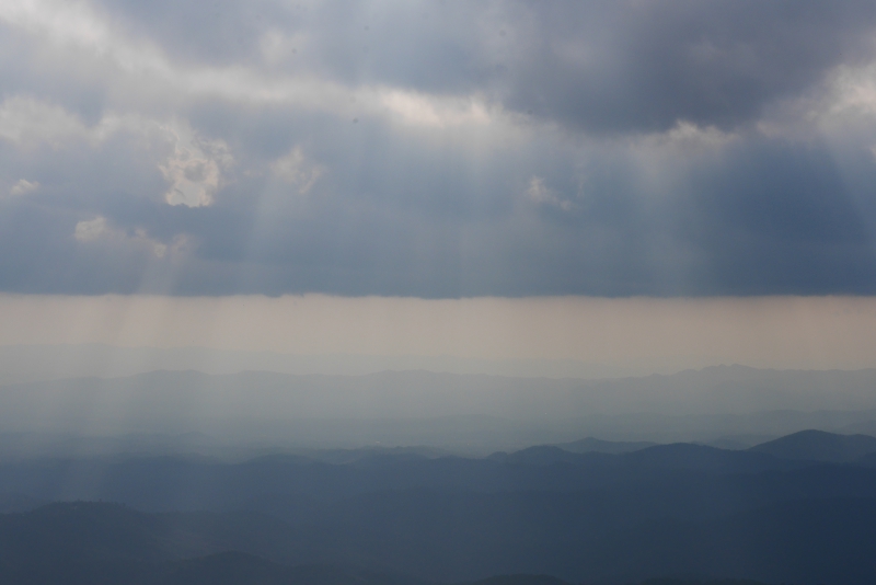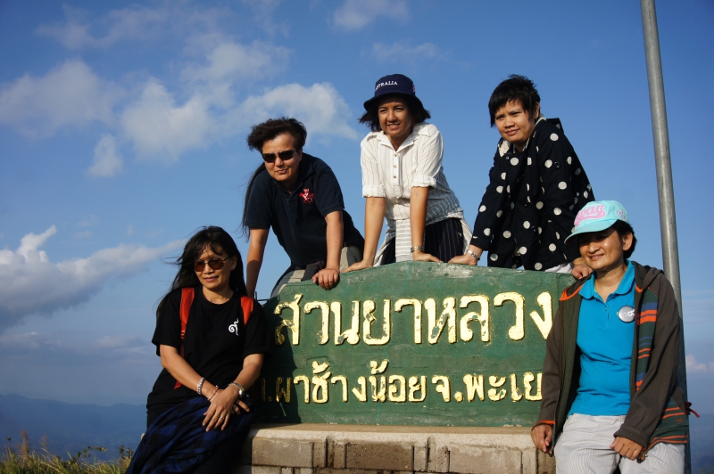 เวลา 17.00 น. หลังจากที่เก็บสัมภาระและเตรียมมื้อเย็นเสร็จเรียบร้อยแล้ว ก็ถึงเวลาแห่งการเก็บภาพบรรยากาศโดยรอบสวนกาแฟ และจุดชมวิวที่ถือเป็นไฮไลท์ของดอยสวนยาหลวงแห่งนี้ ณ จุดชมวิว 360 องศา เราได้ฟังเรื่องเล่าและประวัติความเป็นมาของดอยสวนยาหลวงแห่งนี้จากคุณเจริญศักดิ์ เลิศวรายุทธ์ ท่านได้เล่าถึงการเดินทางของบรรพบุรุษชนเผ่าเมี่ยนที่มาจากประเทศจีนเมื่อหลายร้อยปีก่อน มาตั้งรกรากอยู่ที่ดอยสวนยาหลวงแห่งนี้ ชาวบ้านในสมัยนั้นประกอบอาชีพทำไร่ฝิ่นเป็นหลัก จากรุ่นสู่รุ่น เมื่อถึงรุ่นคุณเจริญศักดิ์นั้นก็ยังมีการปลูกฝิ่นอยู่บ้างแต่ไม่มากเหมือนแต่ก่อน คุณเจริญศักดิ์เล่าว่าดอยสวนยาหลวงในปัจจุบันนั้นแตกต่างไปจากในอดีตมาก เพราะว่ามีต้นไม้ใหญ่ขึ้นมาให้เห็นอยู่บ้าง ซึ่งในสมัยก่อนนั้นแทบจะไม่มีต้นไม้ใหญ่เลย ณ ยอดดอยแห่งนี้มองเห็นแต่ต้นฝิ่นมากมายสุดลูกหูลูกตา เมื่อทางราชการได้เข้ามาขอให้ยกเลิกการปลูกฝิ่น แล้วสนับสนุนให้ประกอบอาชีพอื่นๆทดแทน จากนั้นครอบครัวคุณเจริญศักดิ์ก็หันมาประกอบอาชีพเลี้ยงวัว ทำไร่ข้าวโพดและเลี้ยงสัตว์อื่นๆ ดอยสวนยาหลวงแห่งนี้ก็เลยถูกทิ้งร้างเอาไว้ให้เหลือเพียงแต่ต้นหญ้าคาที่ปกคลุมไปท้ังยอดดอยนานหลายปี คุณเจริญศักดิ์ยังเล่าต่ออีกว่าท่านได้รับเลือกจากชาวบ้านให้เป็นผู้นำชุมชน หรือผู้ใหญ่บ้านคนแรกในสมัยนั้น ท่านจึงคิดหาวิธีพัฒนาชุมชนเพื่อสร้างอาชีพใหม่ๆให้แก่ชาวบ้าน ให้มีรายได้และมีความเป็นอยู่ที่ดีขึ้น ในระยะเวลาที่ท่านได้รับเลือกให้เป็นผู้นำชุมชนในสมัยนั้น ได้เดินทางด้วยเท้าเพื่อออกไปติดต่อกับทางราชการในตัวอำเภอท่าวังผา ซึ่งใช้เวลาในการเดินทางออกไปถึง 2 วันกว่าจะถึงตัวอำเภอ เป็นการเดินทางที่ยากลำบากเพราะไม่ได้มีถนนคอนกรีตดังเช่นปัจจุบัน แต่ก็มุ่งมั่นตั้งใจทำเพื่อชุมชนของท่านเอง