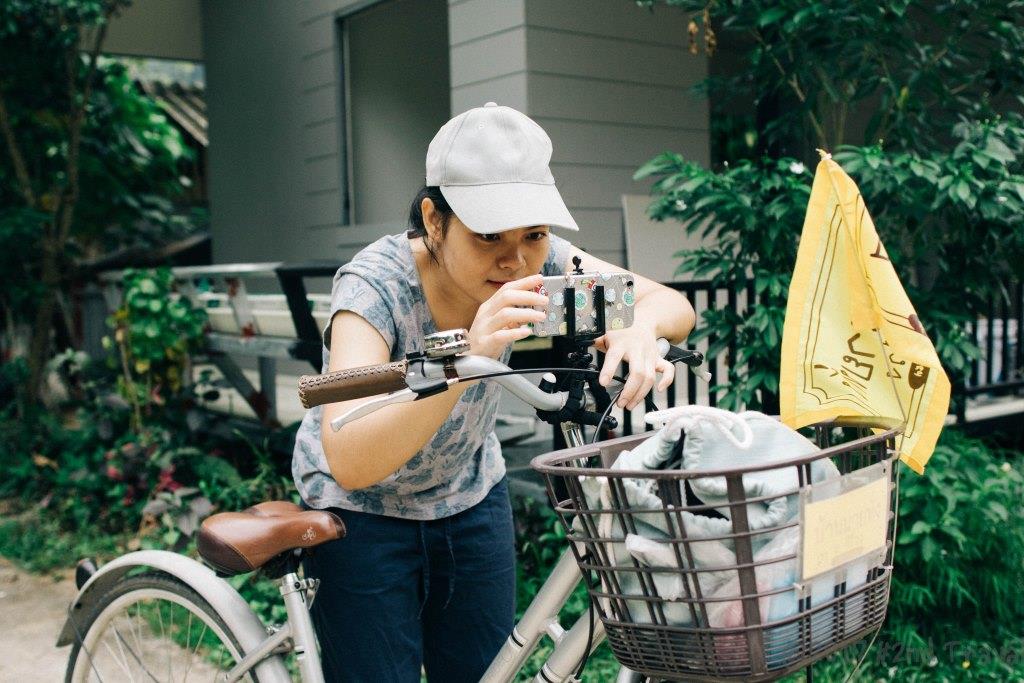 ประมาณ 9 โมงฝนก็ซาเม็ดลง เราสามคนจึงเดินข้ามคลองเพื่อจะไปเช่าจักรยานที่ร้าน นายทั่ง ณ คีรีวง เดือนลัดเลาะไปเรื่อยๆ ก็เจอร้าน เลยเข้าไปถามค่ะ ว่าพอจะมีจักรยานไหม คำตอบคือ เขาเตรียมไว้สำหรับลูกค้าพรุ่งนี้หมดแล้ว 70 คัน เพราะต้องส่งไป Check ก่อนให้ลูกค้า สีหน้าพวกเราคงดูจ๋อยมากมั้งคะ เลยบอกพี่เขาไปว่า ไม่รู้จักร้านอื่นแล้วเพราะมุ่งหน้ามาร้านนี้เลย แล้วถามพี่เขาไปว่า “พี่รู้จัก นายทั่งไหมคะ” พี่เขาอมยิ้มแล้วตอบว่า “ลืมบอกว่า ผมนี่แหละนายทั่ง เจ้าของร้าน” ฮาแตกเลยจร้า จุดไต้ตำตอ 555 พี่ทั่งคุยกับพวกเราถามเรื่องทั่วๆไป คุยเพลิน จนสุดท้ายพวกเราก็ได้จักรยานมาปั่นโดยที่พี่ทั่งไม่คิดตังค์ (ราคาเช่าคือ วันละ 50 บาท คือ สำหรับเราถูกมากนะ ขอบอกถ้าเทียบกับที่อื่นๆ)