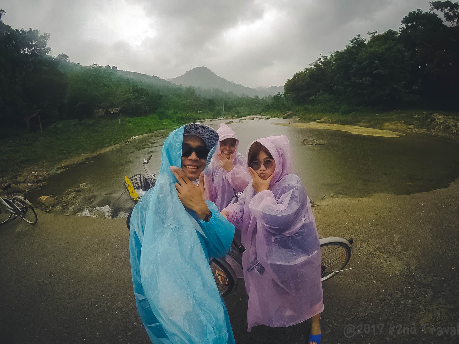 หลังจากได้จักรยานเป็นของตนเอง เราแวะร้านค้าในชุมชนซื้อเสื้อกันฝน ปั่นจักรยานกลับมาที่บ้านเพื่อเตรียมตัวไปต่อที่สะพานแขวน เราปั่นกันแบบกินลมชมวิวมาก เพราะอยากแวะตรงไหนเราก็แวะ ไม่เน้นว่าจะถึงกี่โมง ที่สำคัญนะคะมันเหนื่อยอยู่ไม่น้อยสำหรับการปั่นขึ้นเนิน ขึ้นภูเขา ถ้าชันเราก็เดิน เราไม่เน้นทำเวลา
