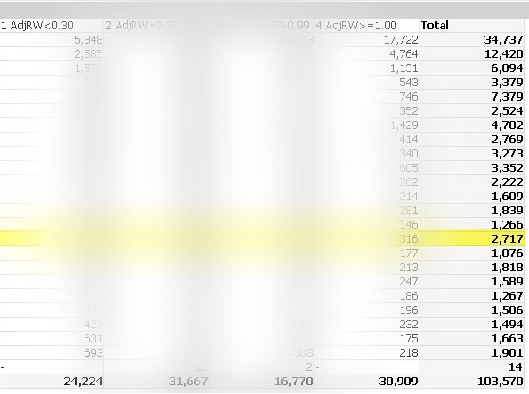 และนี่คือ คนไข้ที่นอน รพ ในครึ่งปีงบของจังหวัดแห่งนึง ด้านซ้ายสุดคือชื่อ รพ crop ตัดทิ้งแล้วเบลอภาพส่วนอื่นๆทิ้งก่อน เดี๋ยวมีคนจำได้ในครึ่งปีงบ มีคนไข้นอนรวม 100,000 คน มีอยู่ 24,000 คนที่มี RW<0.3 ไม่ได้บอกว่า 2.4หมื่นคนนี้ไม่ควรนอน รพ นะ แต่จะบอกว่า 2.4หมื่นคนนี้ ไม่นอน รพ รักษาที่บ้าน ก็หาย คิดเป็น 24% คือเคสง่ายนอนบ้านก็หาย