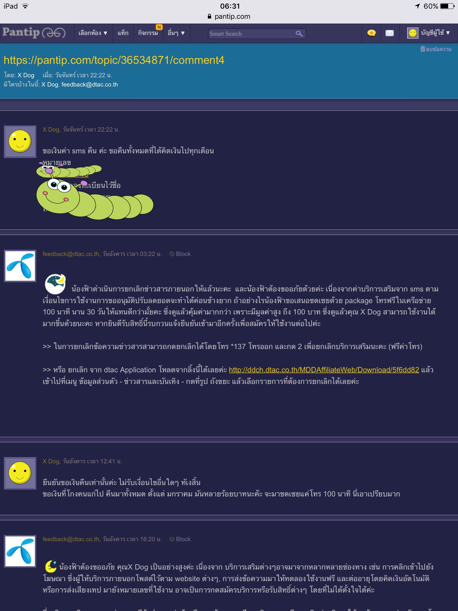 มาดู Dtac เล่นเล่ห์กล ในการขอคืนเงินค่า sms โจร นอกจากโกงเงินไปแล้ว ตอนคืนเงินยังเห็นลูกค้าโง่เง่า