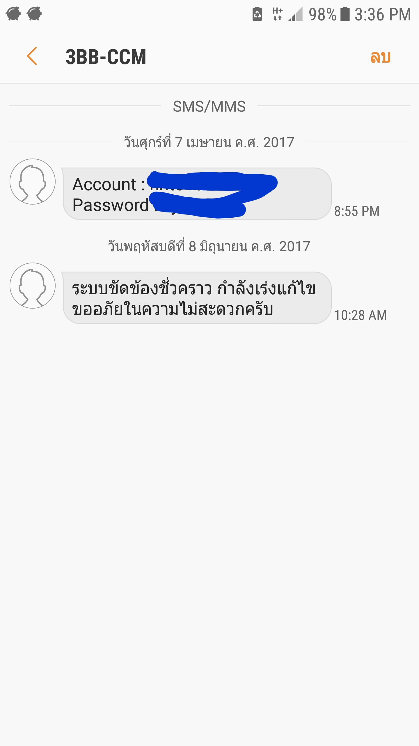 3BB สมุทรสงครามล่มตั้งแต่ประมาณ 10 โมงกว่าๆ ค่ะ ล่มสักพักมีข้อความเข้า
