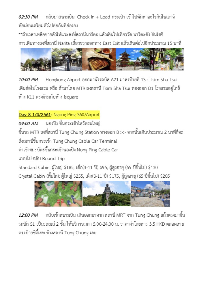 1. เดิน 24 มีนา - 1 เมษา 61ค่ะ (จากเชียงใหม่ ถึงนาริตะ 06:30 น. วันที่ 25 มีค. กลับ 18:30 น. วันที่ 31 มีนา)