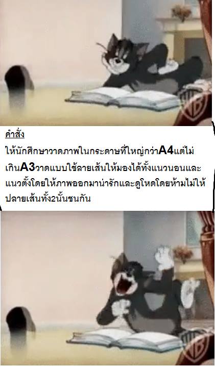 ให้วาดภาพในกระดาษขนาด A3 วาดให้มองรู้เรื่องทั้งในแนวนอนและแนวตั้งให้มีความรู้สึกน่ารัก และ โหดเหี้ยม