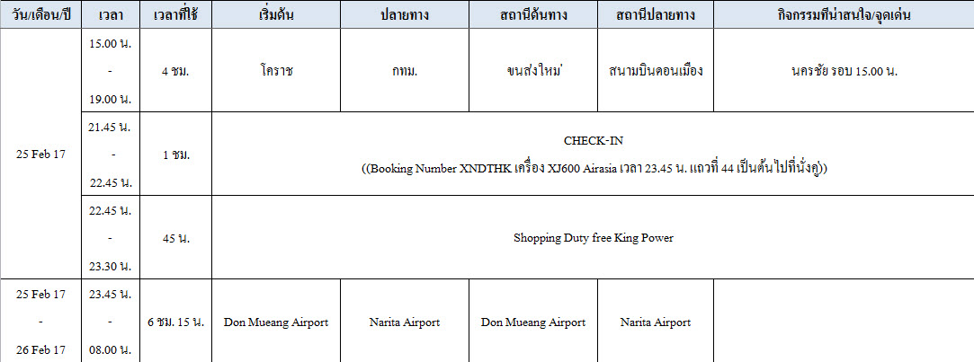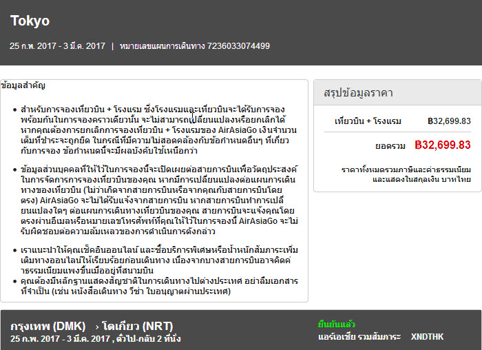 ตั๋วเครื่องบินที่พาเราสองคนเดินทางไปถึงญึ่ปุ่นนั้นเป็นของสายการบิน AirasiaX ซึ่งตอนนั้นที่ซื้อมีโปรโมชั่นนะคะ (ซื้อตั๋วประมาณเดือนมกราคม 2560) เราจองได้ในราคา 32,699.83 บาท ราคานี้รวมตั๋วเครื่องบินไปกลับดอนเมือง-นาริตะ 2 ทีนั่ง และที่พักย่าน UENO 4 คืน โรงแรมที่เลือกพักชื่อ HOTEL MYSTAYS Ueno East (รายละเอียดที่พักจะกล่าวถึงในต่อไปนะคะ) โดยเราได้เลือกช่วงวันเดินทางคือวันที่ 25 กุมภาพันธ์ - 3 มีนาคม 2560 ซึ่งราคานี้หารสอง ก็เฉลี่ยแล้วคนละ 16,350 บาท ถือว่าเป็นราคาพอใจมากสำหรับเราสองคนค่ะ