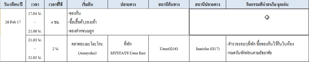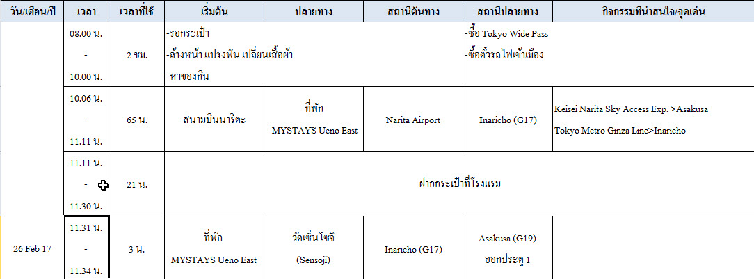 ระหว่างรอรถไฟเข้าเมือง ตรงจุดนี้มันมีห้องน้ำค่ะ คนไม่ค่อยเยอะ แนะนำให้ล้างหน้า แปรงฟัน เอาน้ำลูบๆตัว เปลี่ยนเสื้อผ้าเลยนะคะ จะได้ไม่เสียเวลาค่ะ เรานั่งรถไฟจากสนามบินนาริตะไปยังสถานีปลายทางคือ Inaricho ใช้เวลาเดินทางชั่วโมงนิดๆค่ะ