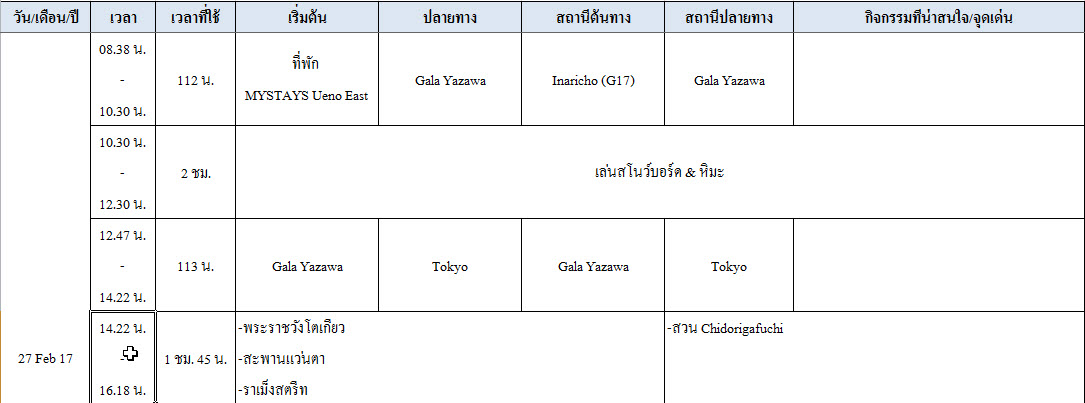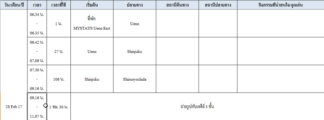 **เวลาเดินทางโดยรถไฟเอามาจากเวป http://www.hyperdia.com/en/