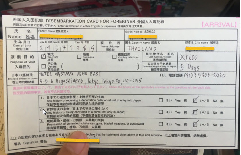 แนะนำให้กรอกให้เสร็จตั้งแต่ก่อนลงจากเครื่องนะคะ จะได้ไม่เสียเวลาตอนที่จะผ่านตม.ค่ะ