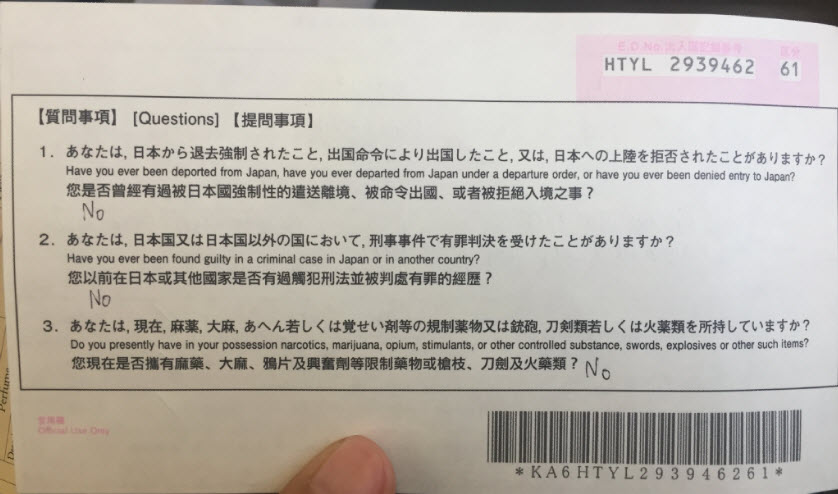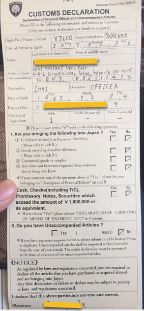 ถึงสนามบินดอนเมือง ก็เชคอินปกติ ขึ้นเครื่องหลับยาว ๆ ไป (เราเดินทางประมาณ 5 ทุ่มไปถึงสนามบินนาริตะตอนเช้าค่ะ) พอใกล้ถึงก็จะมีเอกสารมาแจกให้กรอกข้อมูลตามนี้ค่ะ