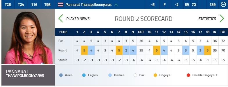 จากที่ทำได้ 5 เบอร์ดี้ เลยเหลือแค่ -2