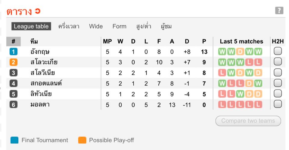 => อังกฤษฟอร์มดีสุดๆ 13 แต้มจาก 5 นัด มองนัดนี้ดีกว่าเจ้าบ้าน และจะบุกมาคว้าชัยได้สำเร็จ