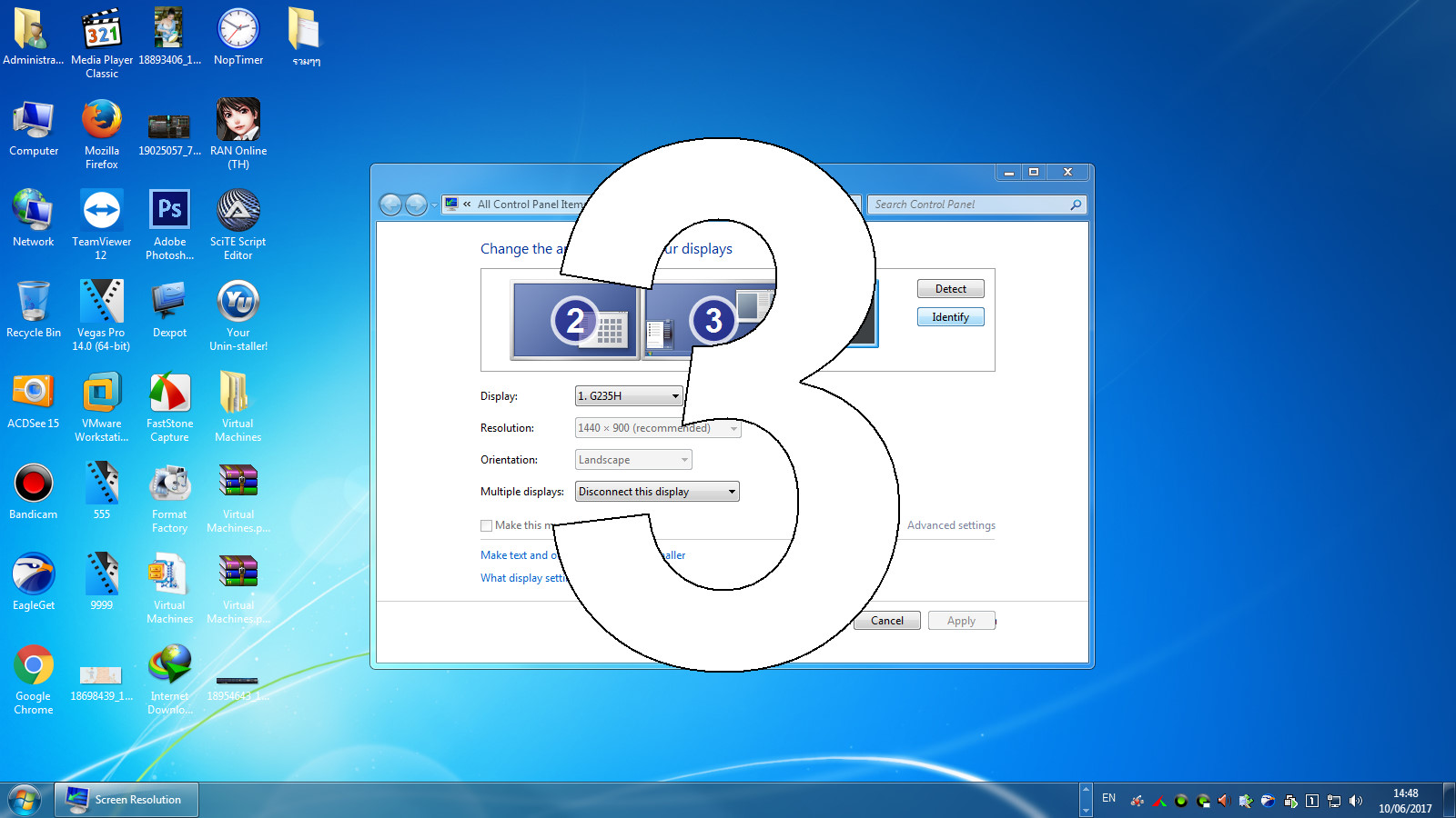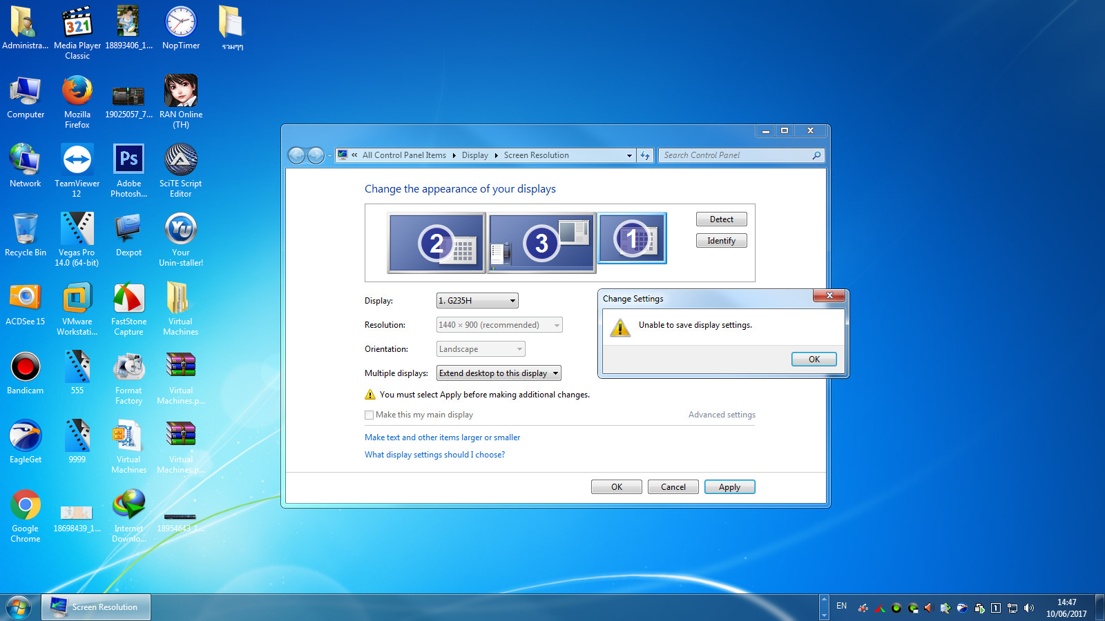 เพราะตอนนี้มันได้แค่ 2 จอครับ จอมีขนากต่างกันครับ LCD ทั้ง 3ตัว 19" 2 ตัว และ 23" 1 ตัว สลับไปสลับมายังก็ได้แค่ 2