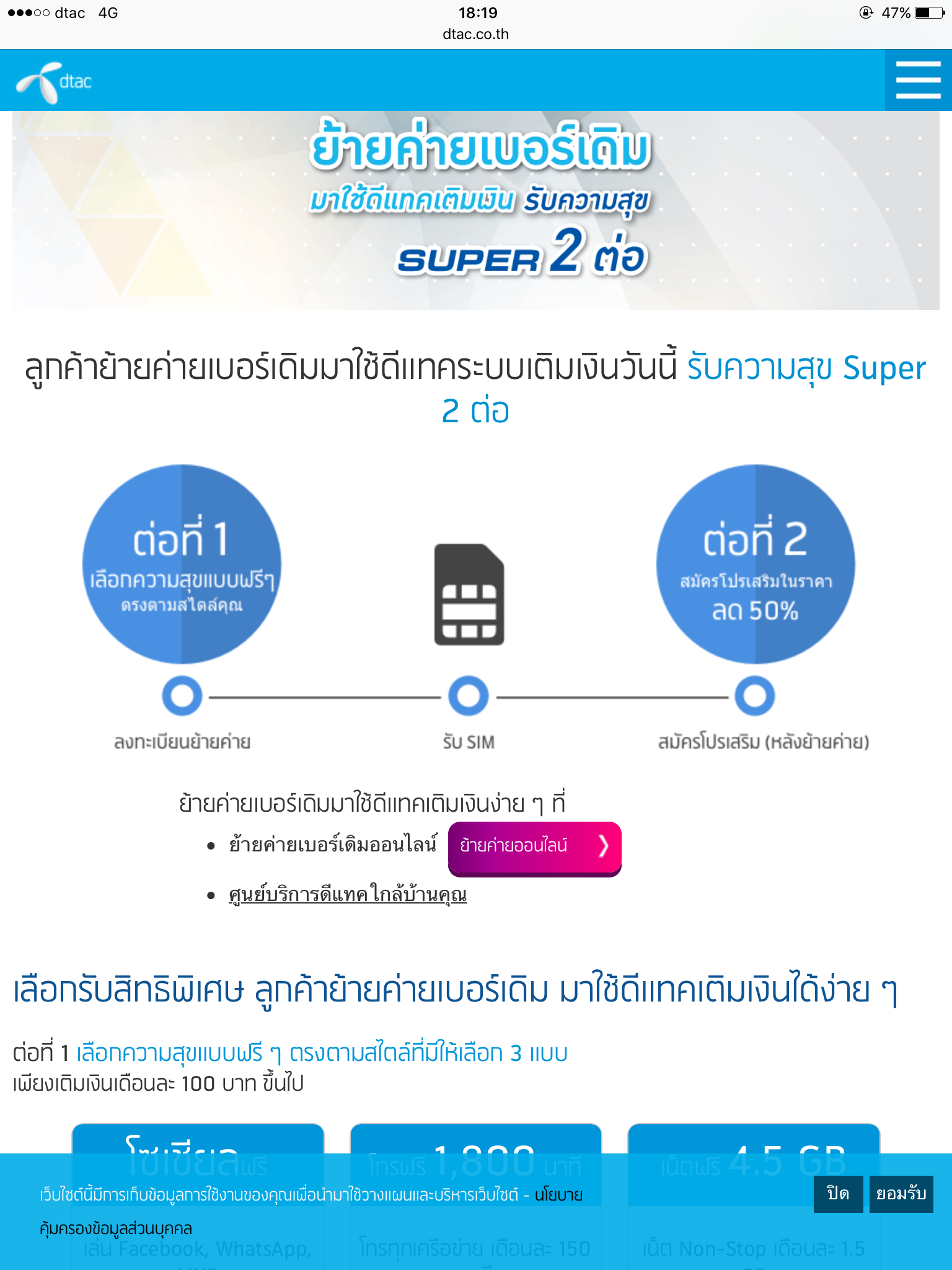 ถึงทรูครับตอนนี้แค่สอบถามก่อนย้ายว่า จะขอเป็นโปรรักหมดใจสำหรับลูกค้าเก่าได้ไหม ถ้าไม่ได้ผมจะได้ย้ายไปดีแทคหรือ ais