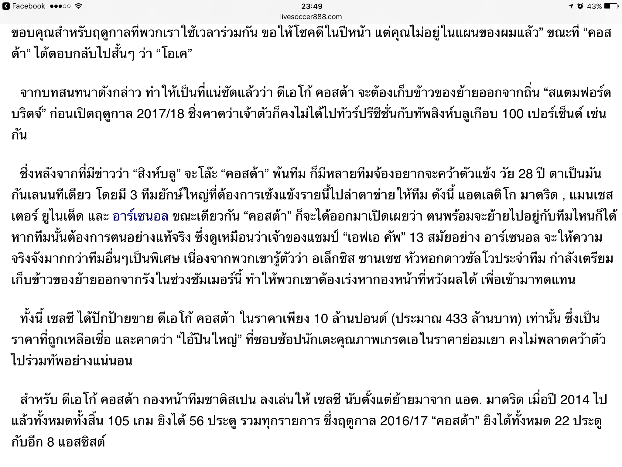2. ไปจีนแต่มีเป้าหมายคือกลับไป แอต.มาดริค ในช่วงมกราคมที่ตลาดเปิด คือมีทีมนึงในจีนที่เจ้าของมีหุ้นส่วนในแอต.มาดริค อาจจะเอาคอสต้าไปเล่นรอเวลาที่จีนก่อนซักระยะนึง แล้วก็ขายกลับคืนไปให้ตราหมีเมื่อพ้นโทษแบนแล้ว
