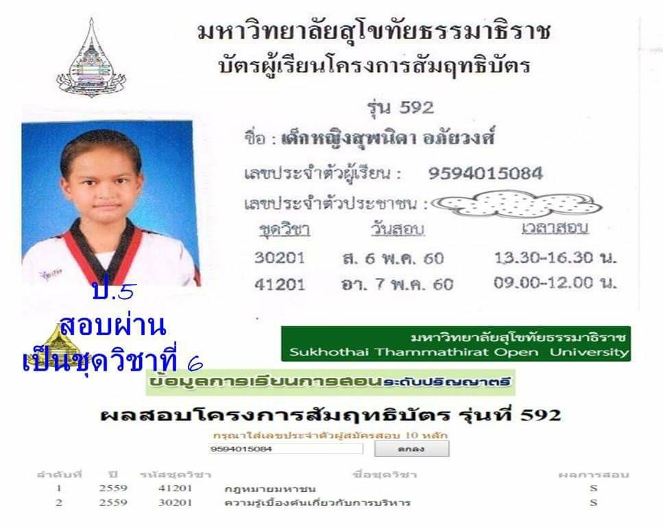 น้องใบบัว เด็ก ป.5 สอบผ่านวิชากฏหมายมหาชน มสธ.