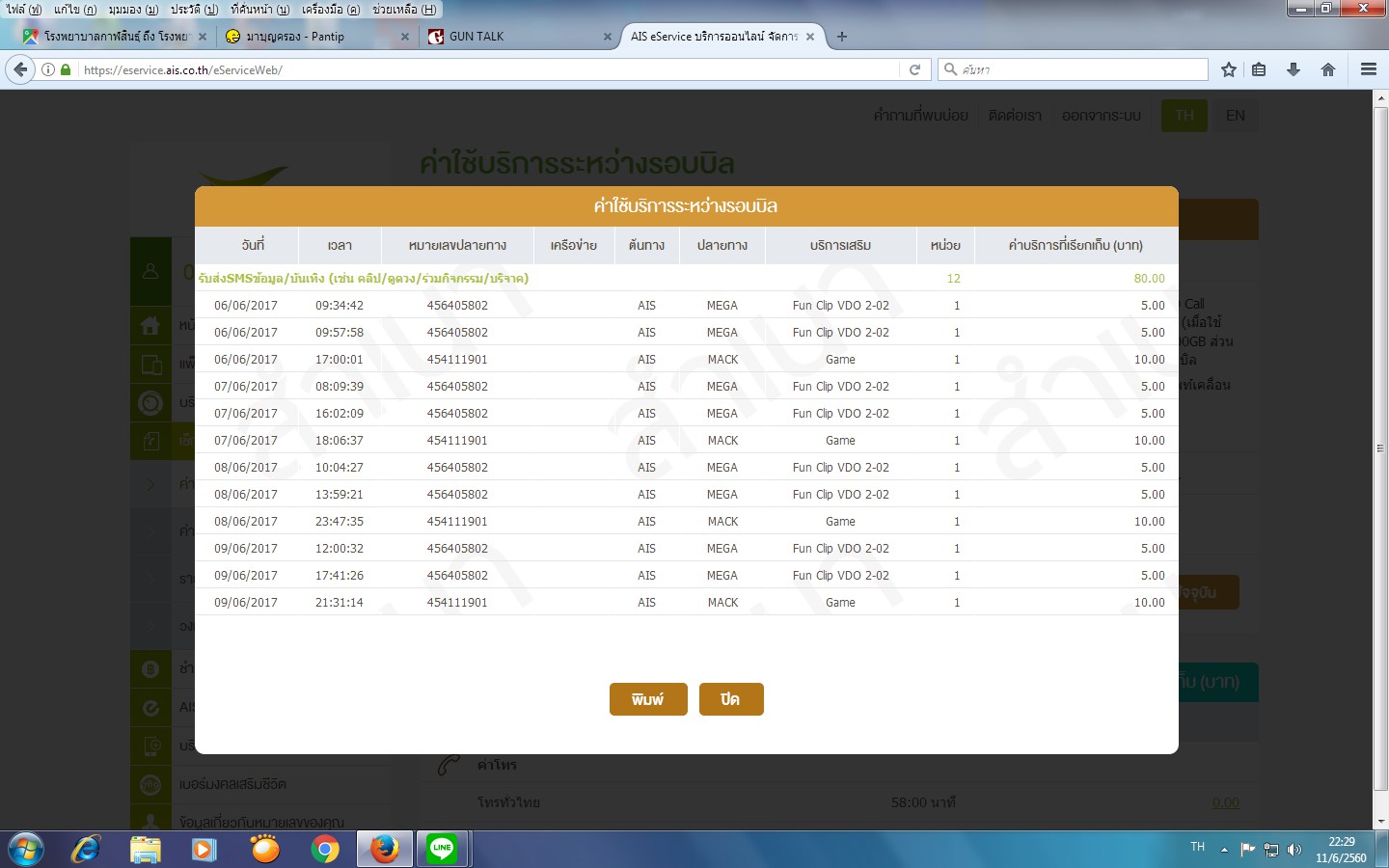 1.วันที่ 6/6/60 โทรศัพท์ของลูกชาย แจ้งว่าท่านสมัคร SMS