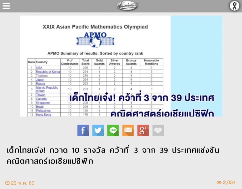 (อันนี้ข่าวเก่าหน่อยของเดือนที่แล้ว แต่น่าสนใจครับ เด็กไทยเก่งมากๆ)